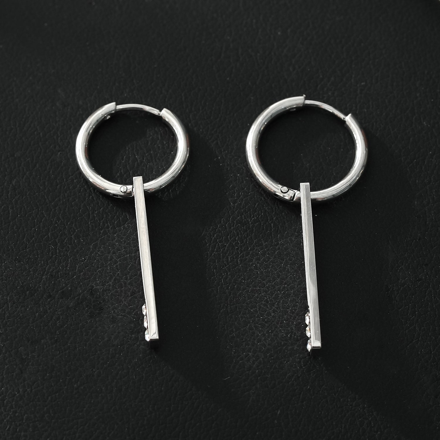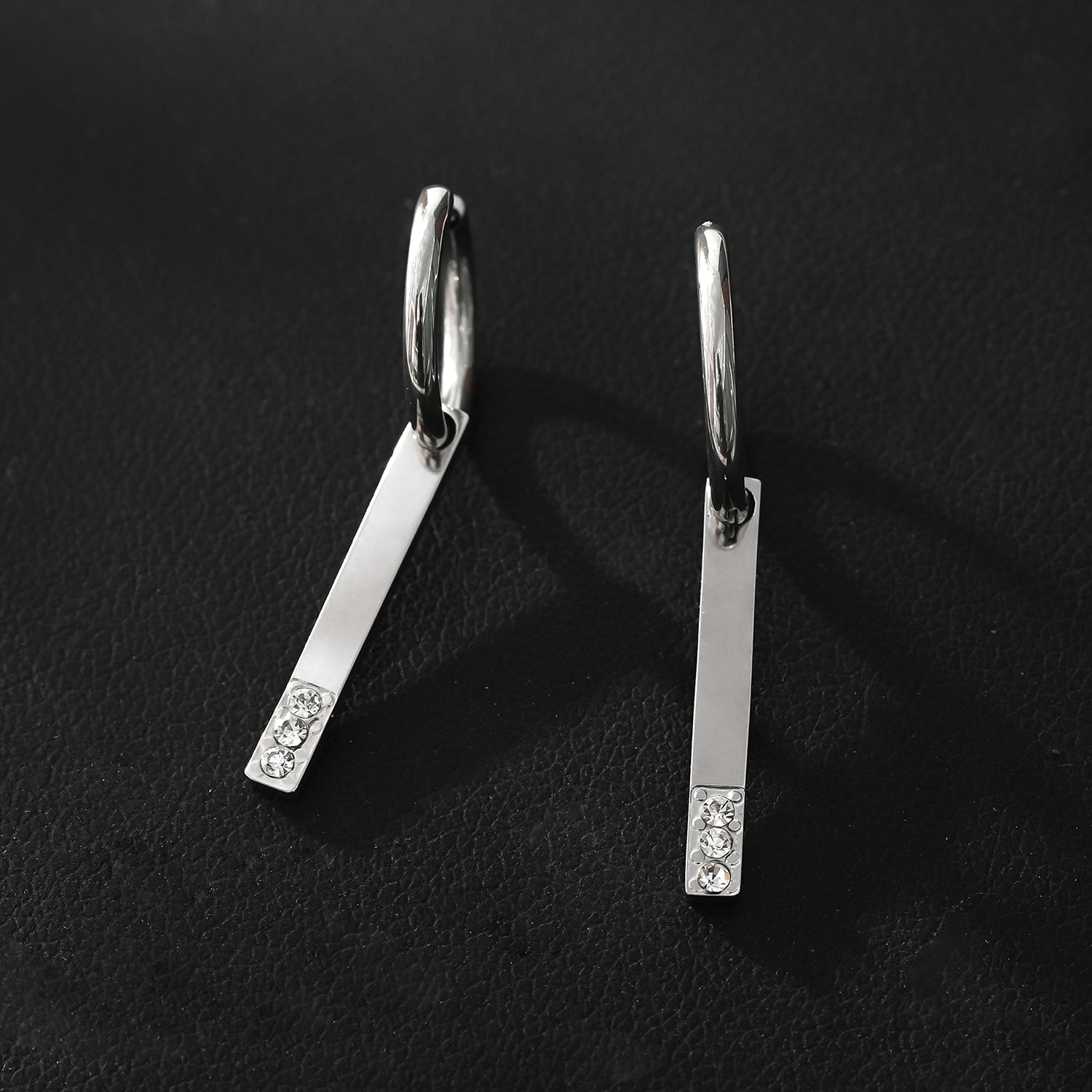 Elevate your style with this exquisite minimalist drop charm hoop earrings, This match stick style pendant is embedded with a trio of sparkling AAA zirconia gemstones, offering a cruelty-free and ethically sourced alternative that mimics the brilliance of diamonds.