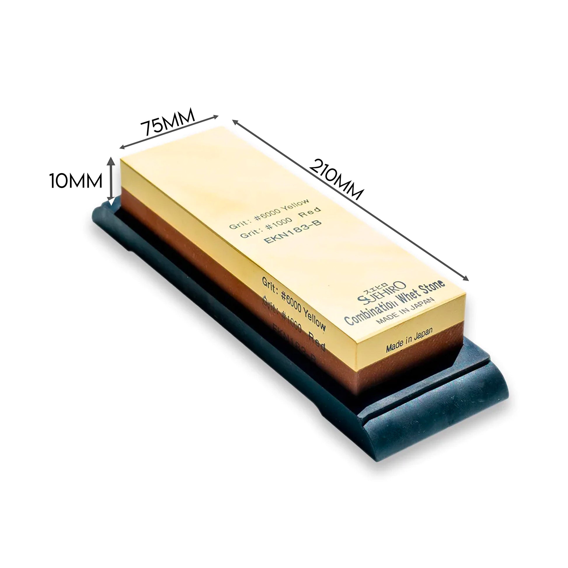 We recommend this stone to anyone who is purchasing a brand new knife and looking for an affordable sharpening option to maintain the edge of their new knife. The 1000 grit side is effective at removing a small amount of steel, all you will need to do on a brand new knife. After using the #1000 grit side, flip the stone over to polish the edge of the knife on the #6000 grit side and get a silky smooth edge. If you are looking for a stone to sharpen older, more dull knives, we recommend the #320/1000 grit stone.