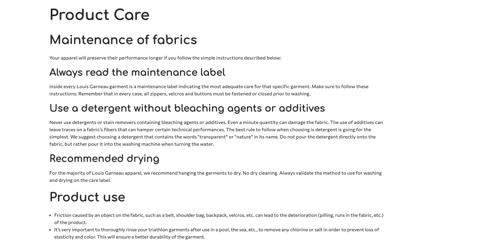 Check product photos in case of sizing and/or product care inquiries.