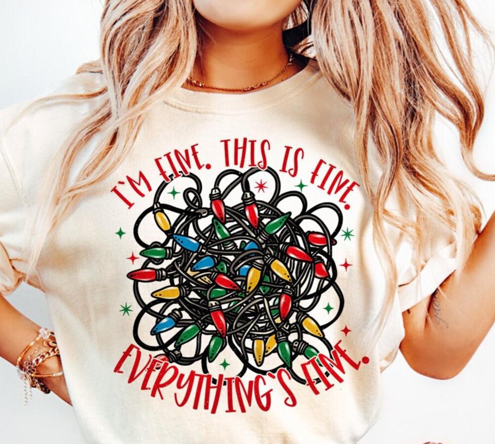 Sweatshirt Crew Or Hoodie T-Shirt Christmas I am Fine