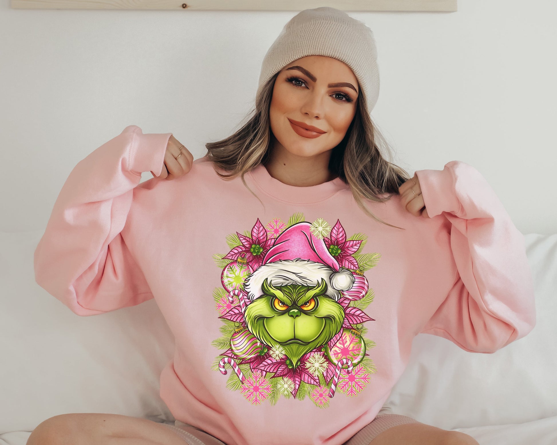 Sweatshirt Hoodie or T-Shirt Christmas Grinchh Pink