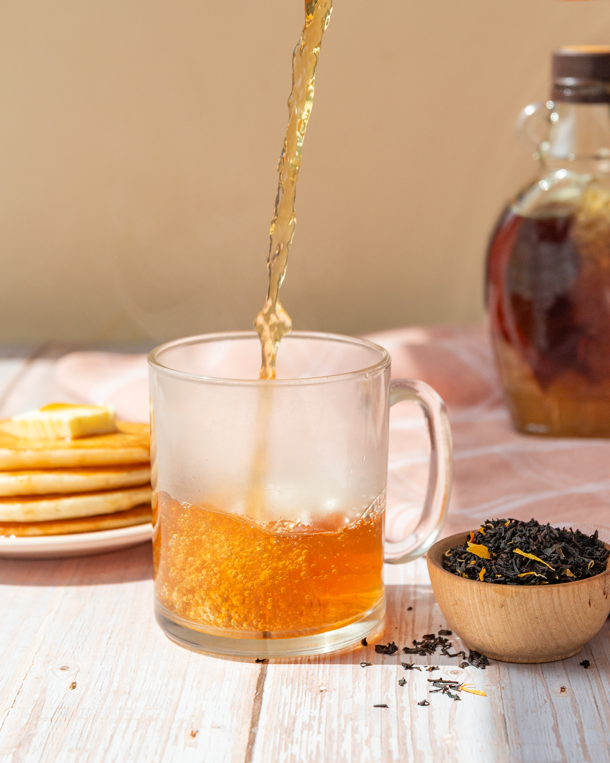 A naturally sweet and aromatic loose leaf black tea that captures the essence of a warm stack of pancakes drizzled in pure Canadian maple syrup.