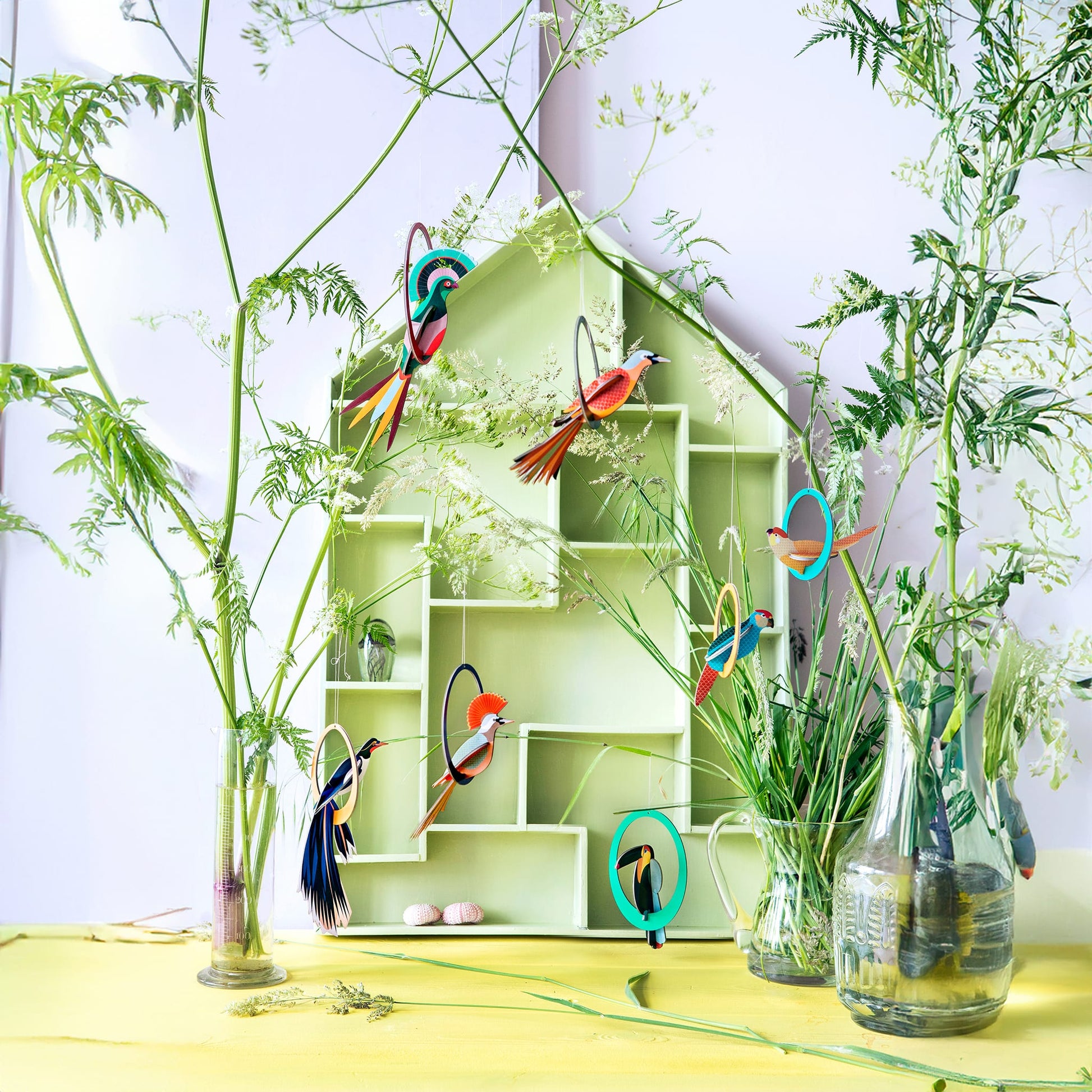 Once assembled, the toucan measures 11 x 10 x 17 cm (4.3" x 3.9" x 6.7") and can be easily hung in a plant or any decorative spot with the included string. Perfect as both an ornament and a piece of 3D art, the Swinging Toucan adds a lively touch to any home while celebrating eco-friendly design. Ideal for eco-conscious Canadian homes, this playful bird is sure to brighten any space.