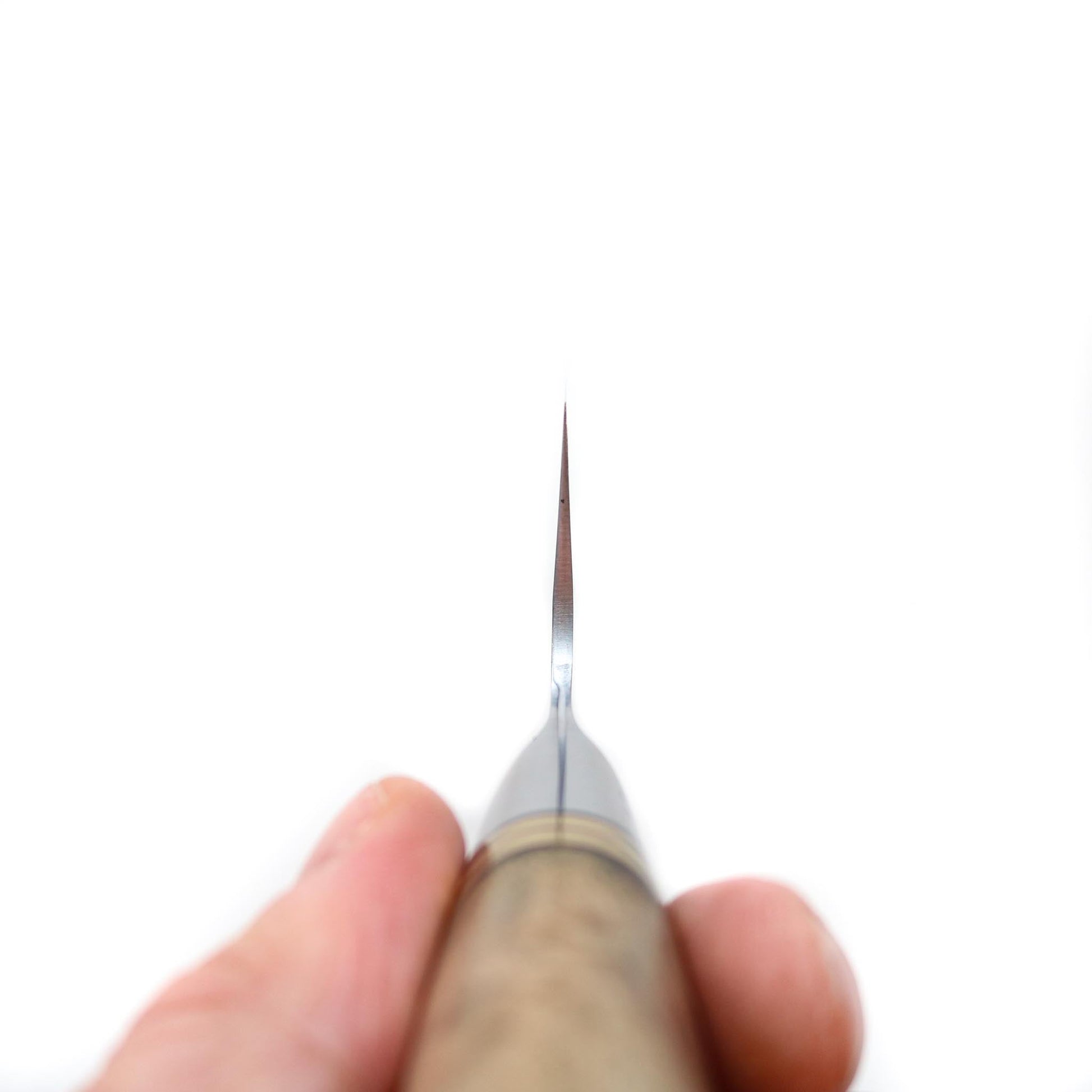 The Gyuto is the Japanese equivalent to a standard western style Chef's knife and is THE most versatile shape available. It can be used to break down fish and other animals, chop vegetables with both an up and down and rocking motion, slice cooked and raw proteins and anything else you can think of. We highly recommend this shape to anyone looking for that one go to knife they can grab with confidence for any task.