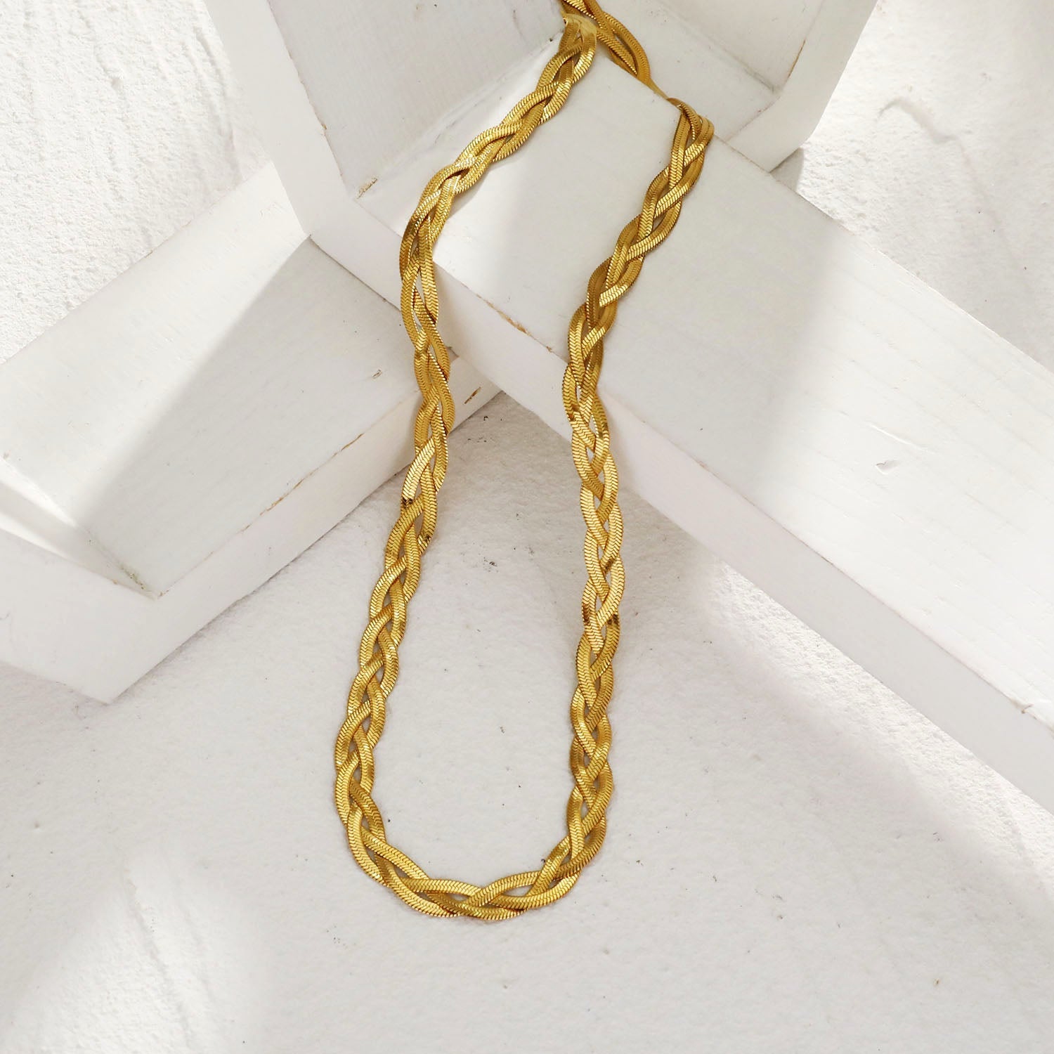 TARA Gold: Intertwined Herringbone Snake Skin Textured Necklace.