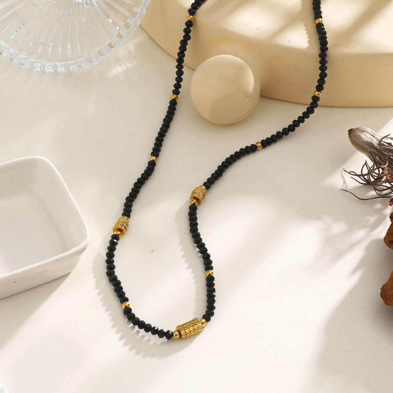 TATIANA Black Crystal & Gold Beaded Necklace
