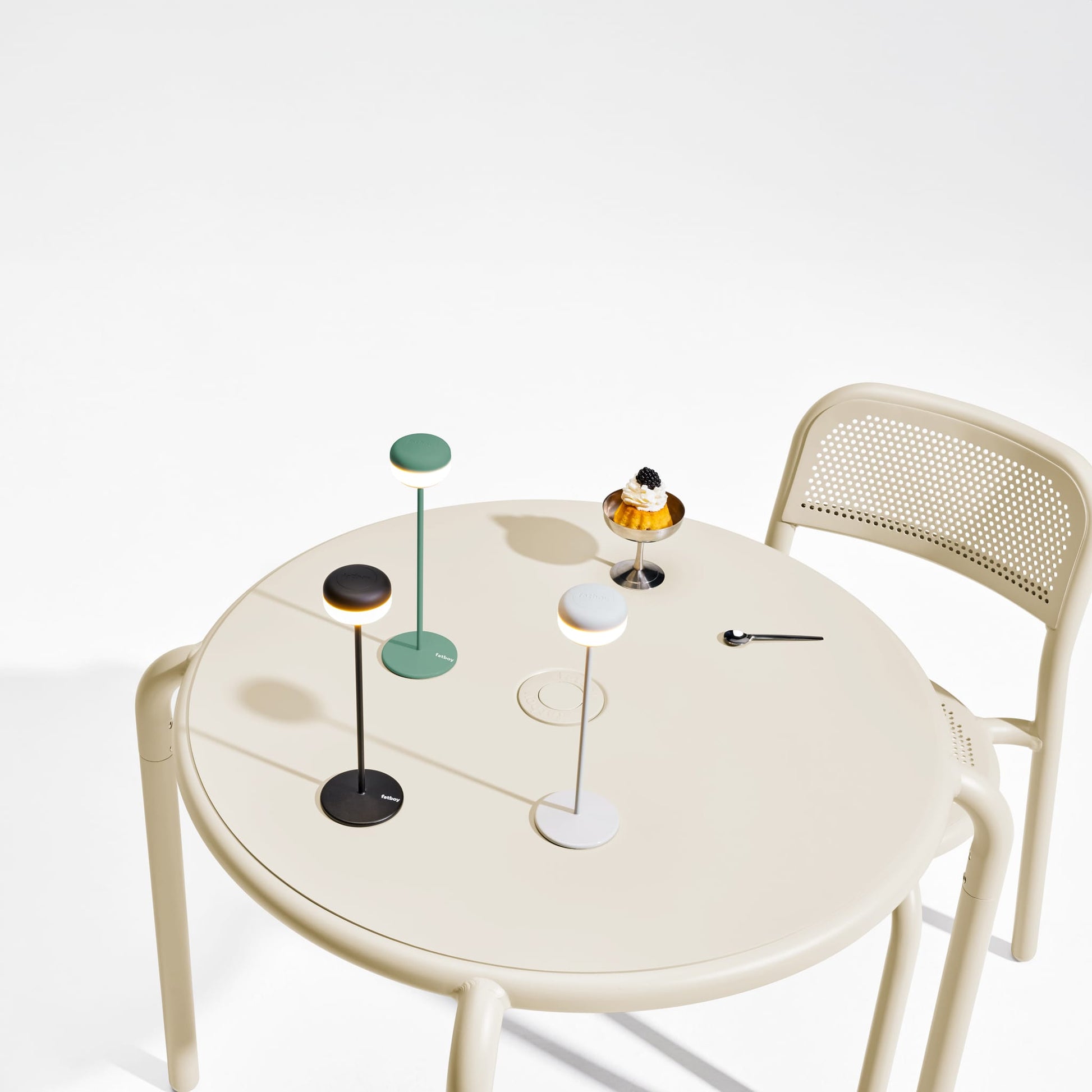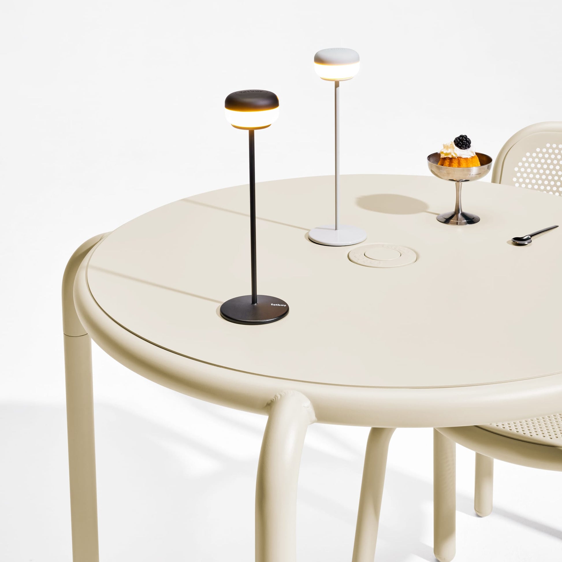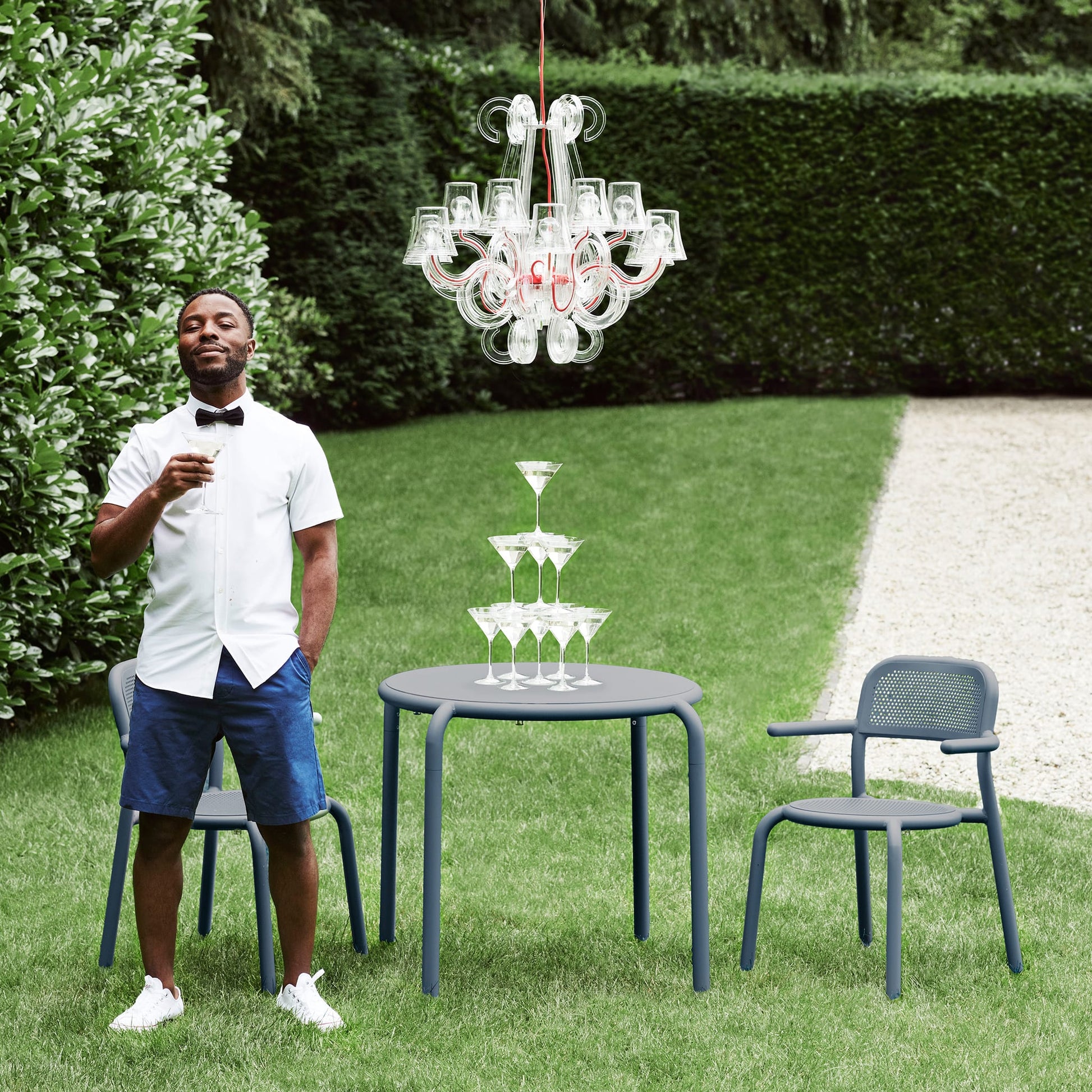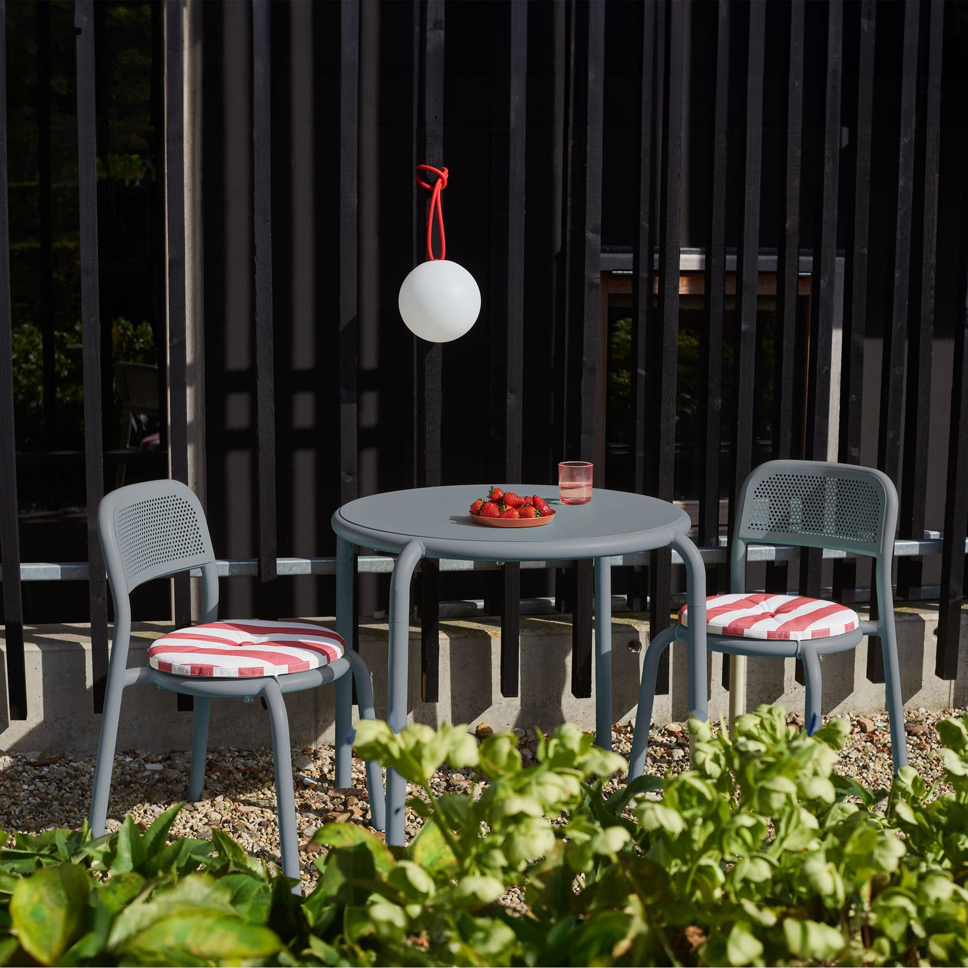 The round top is 80x80cm so it will fit easily on your balcony or terrace. The adjustable feet pad make it easy to change it to the desired height. Because it's treated with the highest-quality outdoor coating, Toní Bistreau is resistant to rust, weather, and its color doesn't fade.