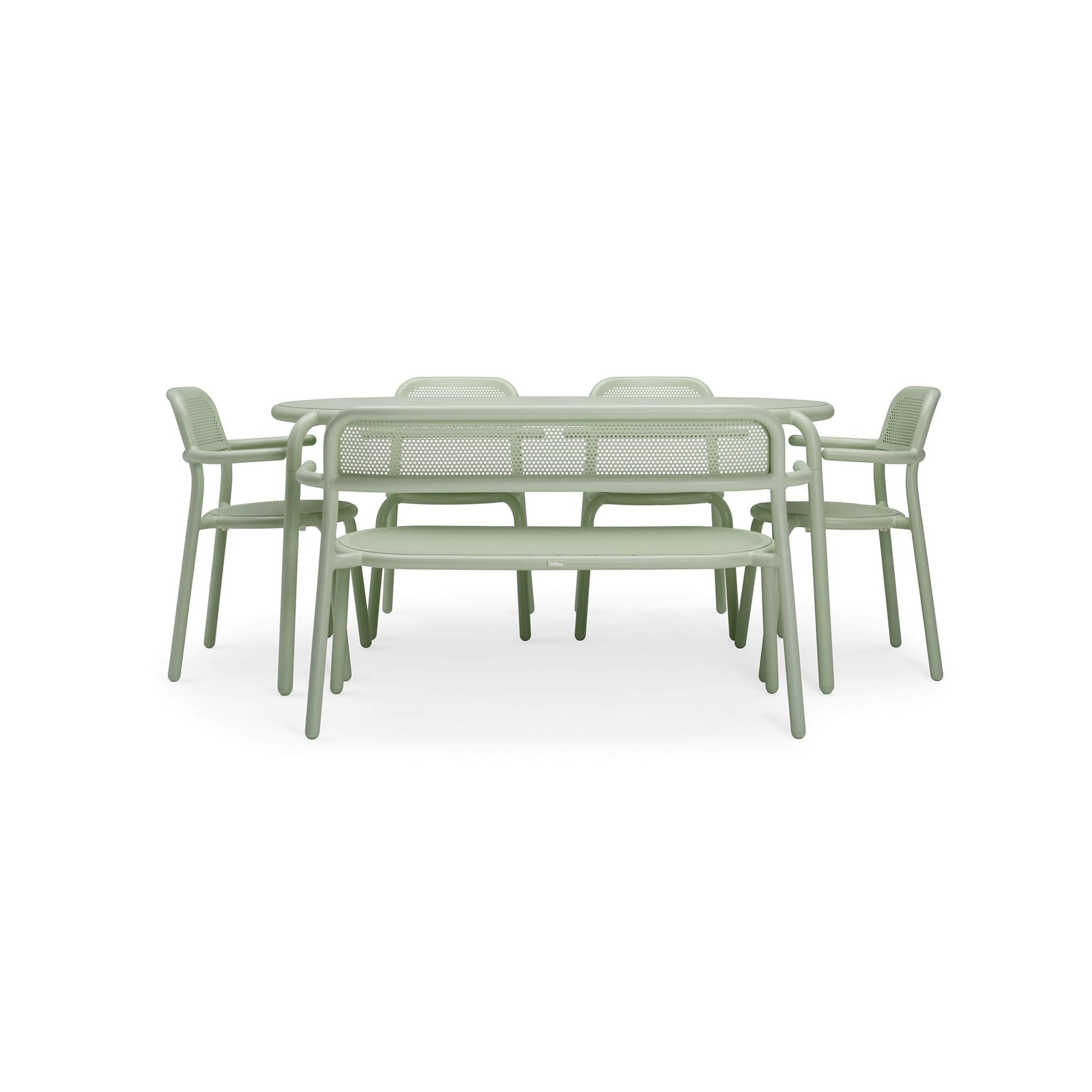 The ambiance is the name of the game with Toní Tavolo. Up to six people can be seated around it: dining, enjoying a few drinks, playing cards a little too competitively, you name it. The generous tabletop and friendly, rounded corners of this contemporary outdoor dining table invite everyone to pull up a chair and join in. Combine it with a few Toní Chairs. Or with Bankski, which is exactly the same length as the table. Pure coincidence. Or perhaps not.