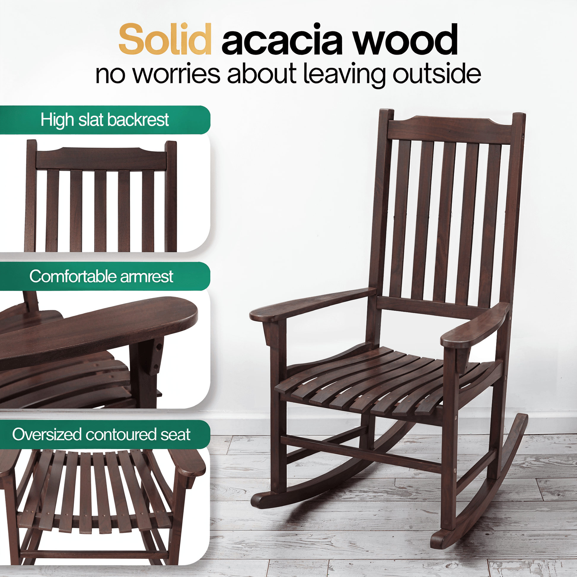 Tranquillo Oasis Wooden Rocking Chair for Patio, Porch, or Indoor Use