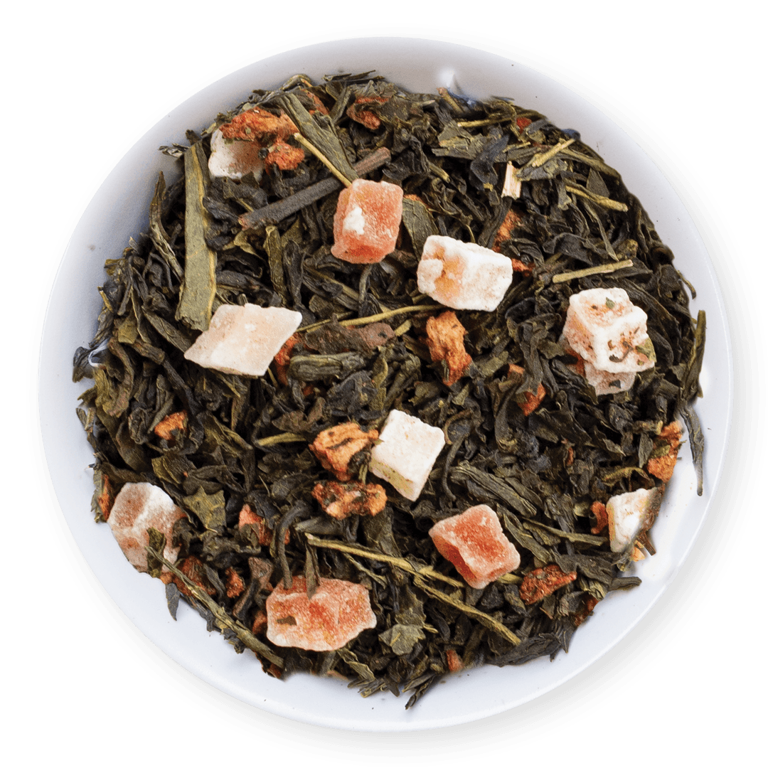 This nourishing green tea is reminiscent of fresh picked strawberries with a hint of tropical fruit. Preserve the sweet taste of Summer all year long with this fruity green tea blend! Makes a perfect iced tea.