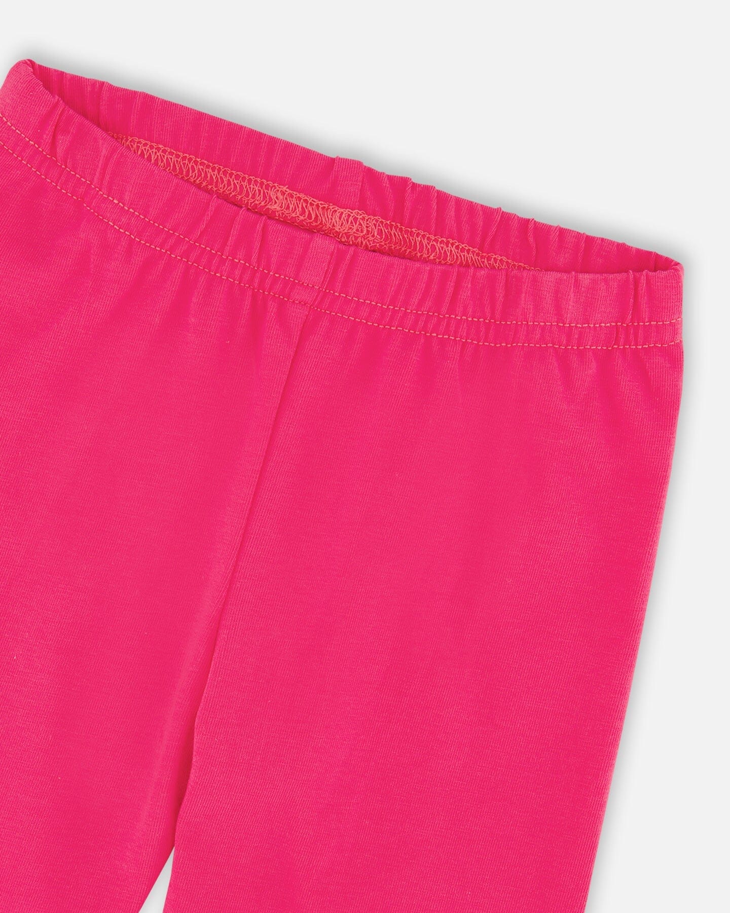 Our tunic and capri set off white with printed flowers and pink is a delightful mix of charm and comfort. The sleeveless A-line tunic features flutter ruffles at the shoulders, and tiered flounces with an allover floral print in soft meadow hues. Paired with pink organic cotton capri leggings finished with little ruffles at the hem, this set is perfect for girls and baby girls to enjoy sunny adventures.