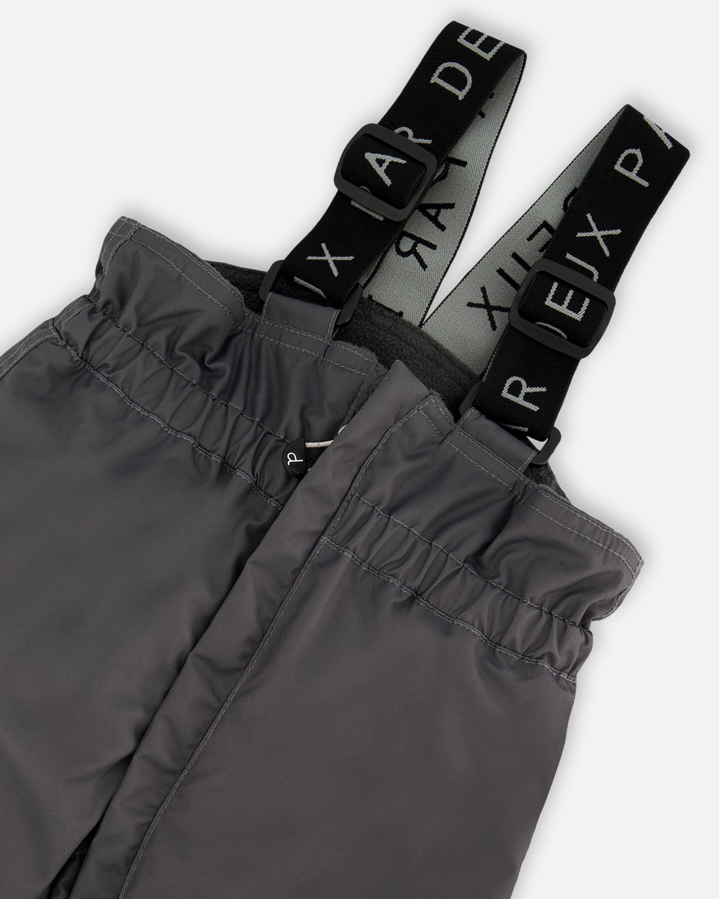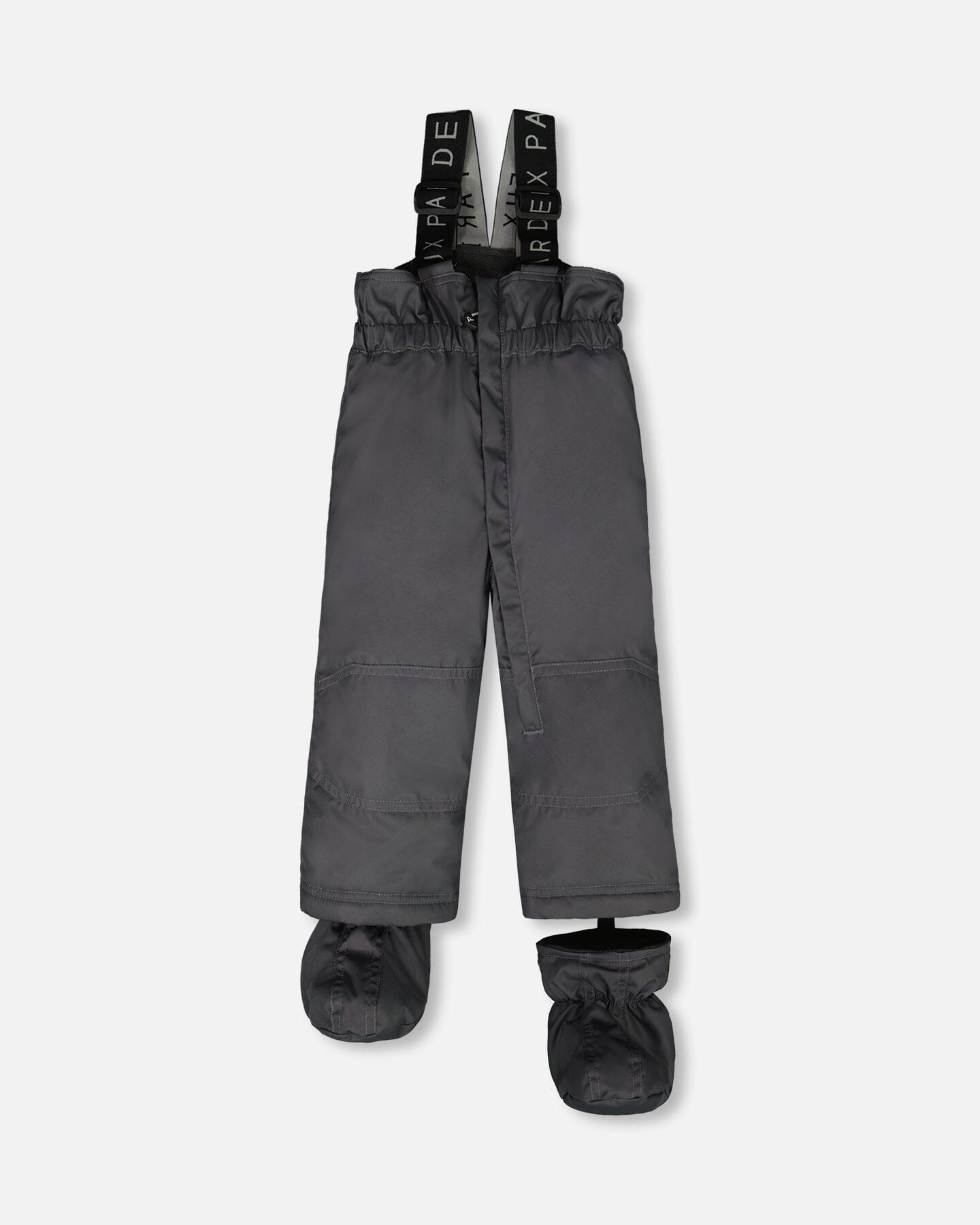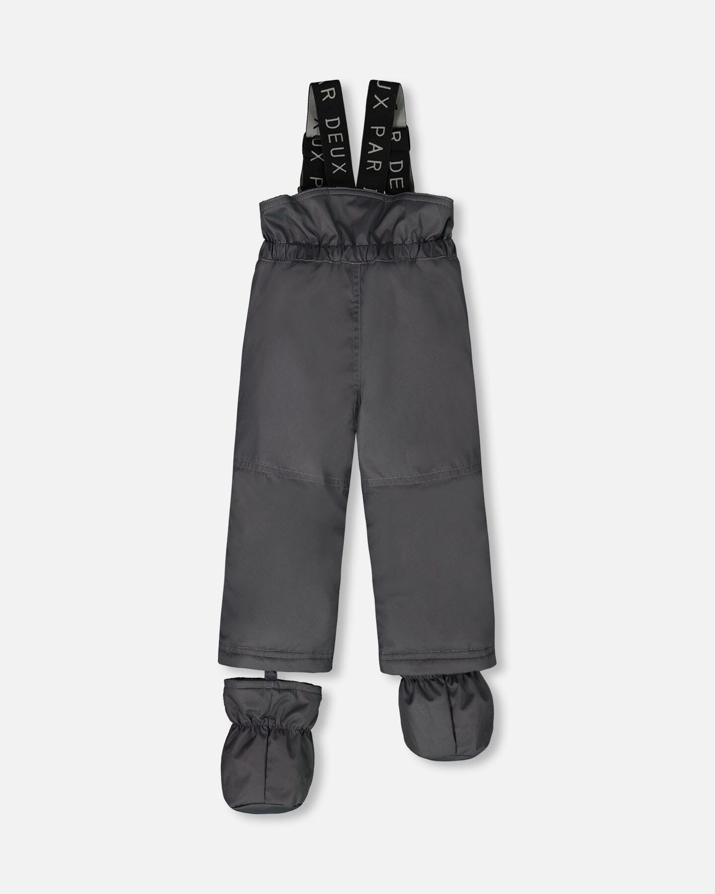 Designed to keep baby warm in frigid weather. This cold weather suit in dark gray is waterproof, abrasion-resistant, and dirt-repellent, offering long-lasting durability in a breathable silhouette that provides cold protection down to -30°C (-22°F). The fleece-lined jacket features a wind flap, chin guard, adjustable waist, and elasticized cuffs. The high-waisted pant features a fleece-lined bib, snow guards, and adjustable rubber straps to hold boots in place. Removable mitts and booties provide added warmth, coverage, and cold weather protection.
