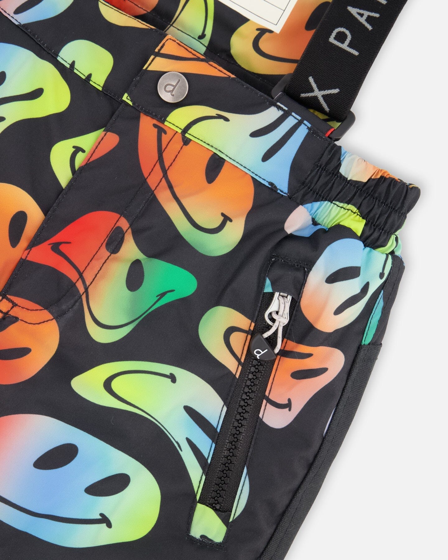 Waterproof, breathable, and insulated for cold protection down to -30°C (-22°F), our two-piece PLAY ski suit in smiley face print is designed for maximum comfort, warmth, and performance in the snow. This winter snowsuit features a fleece-lined jacket with a detachable and adjustable hood, articulated sleeves for improved range of motion, elastic cuffs, a snow skirt, expandable sleeves so you can adjust the length as the child grows, and a protective wind flap and chin guard. The pants are constructed with Cordura®-reinforced panels for long-lasting durability, articulated knees, adjustable and removable suspender straps, ankle snow guards, and zippered pockets to hold ski passes and other essentials.