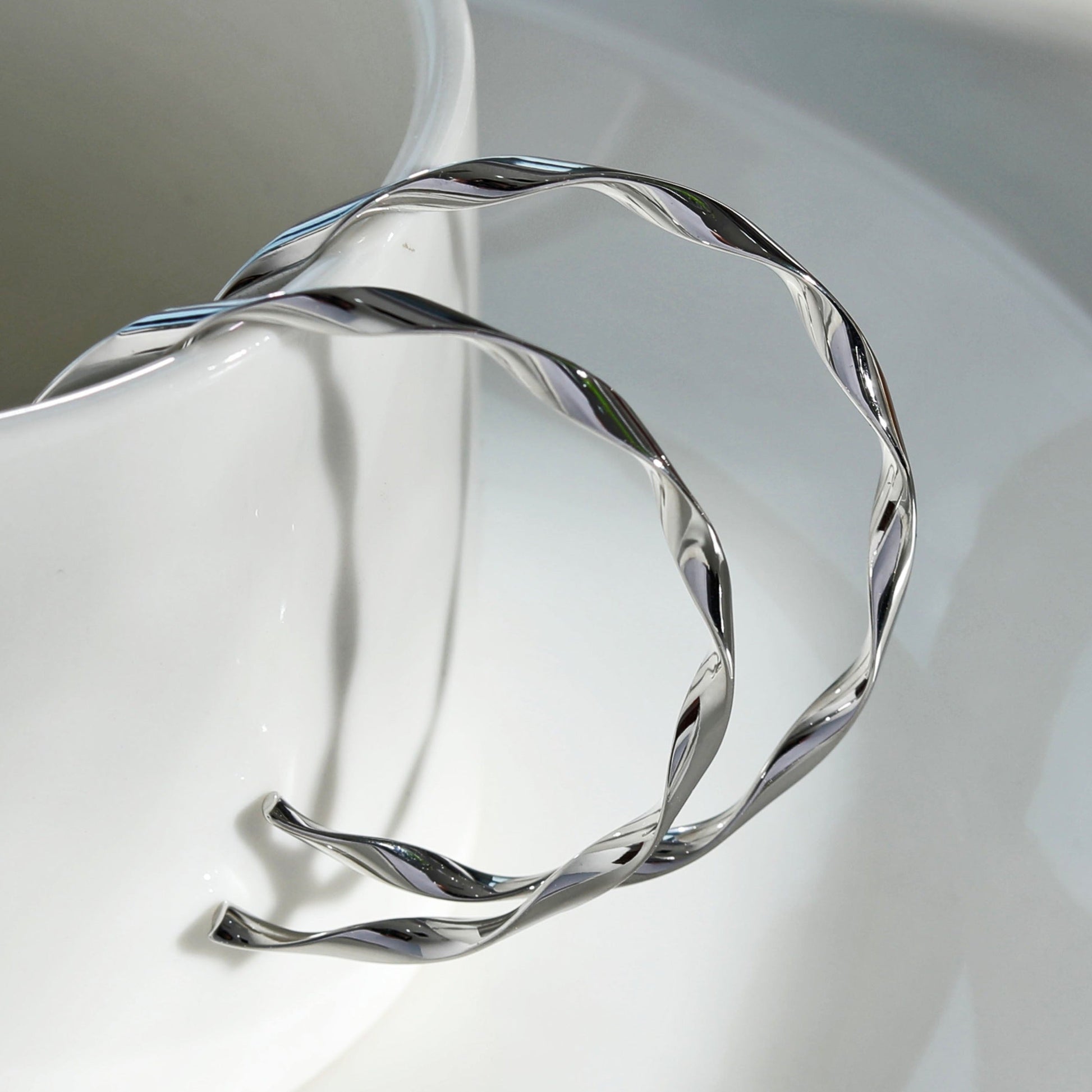 A classic hoop with a modern wavy twist design. The perfect accessory for any outfit.