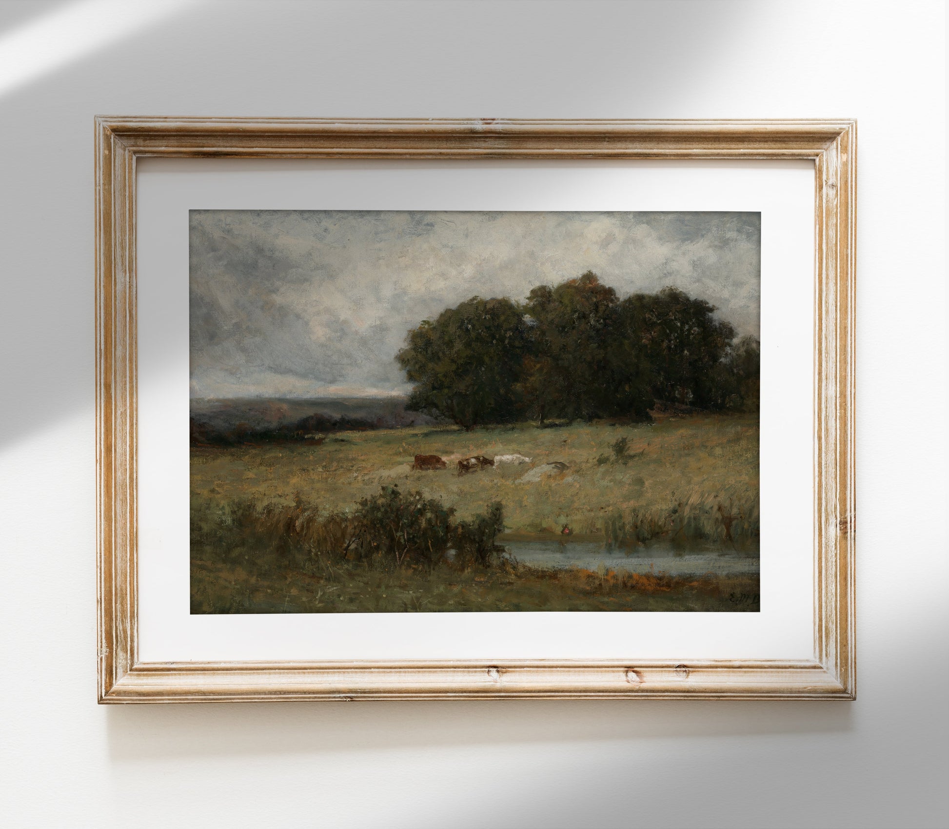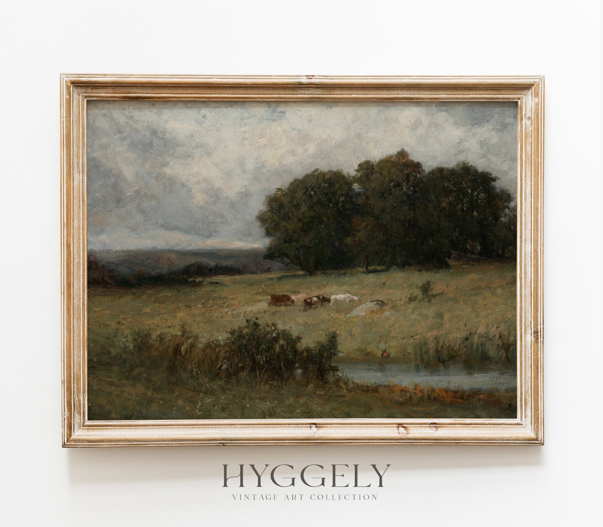 Hyggely Vintage Art Print Collection - Antique Moody Farm Landscape Painting