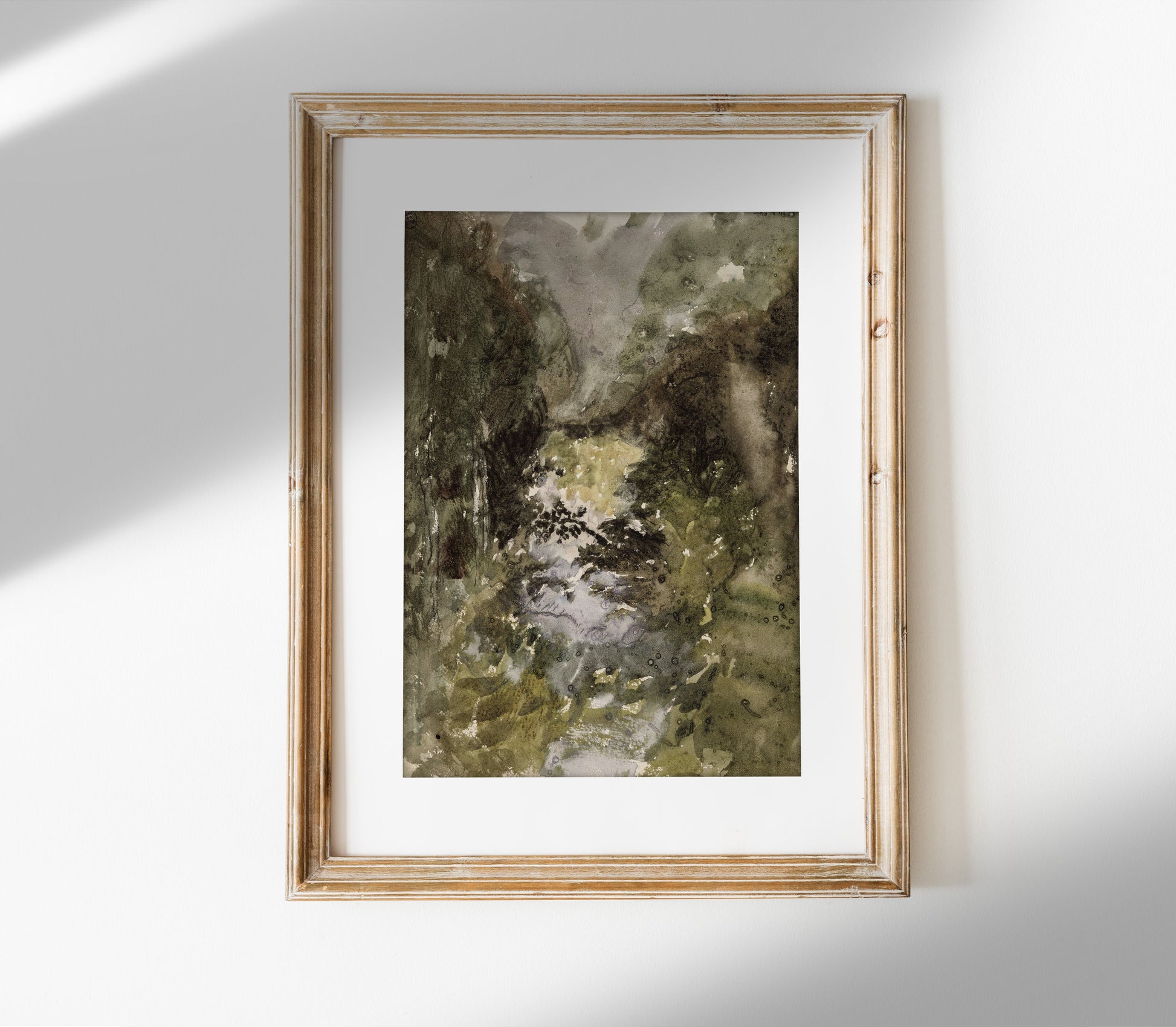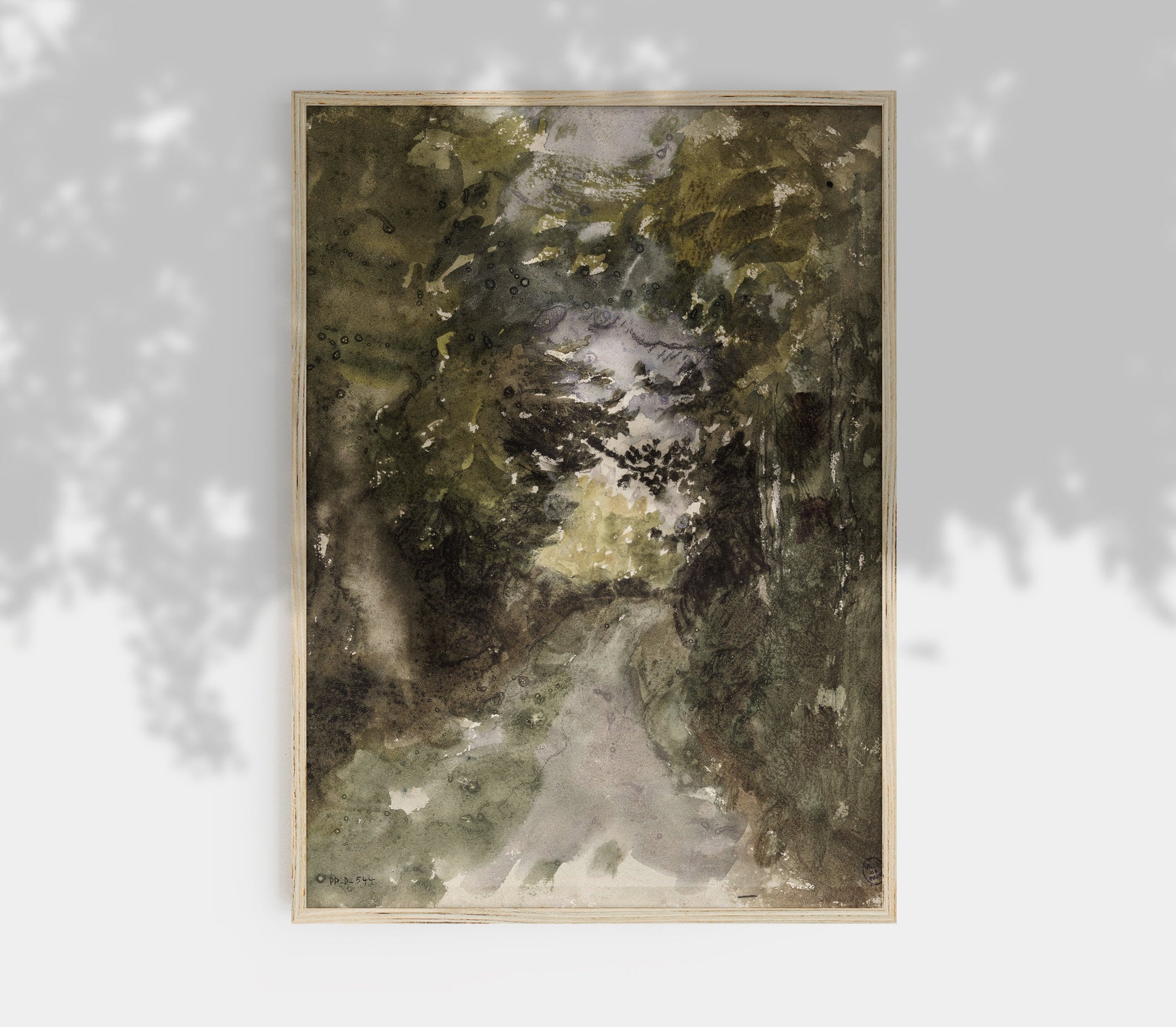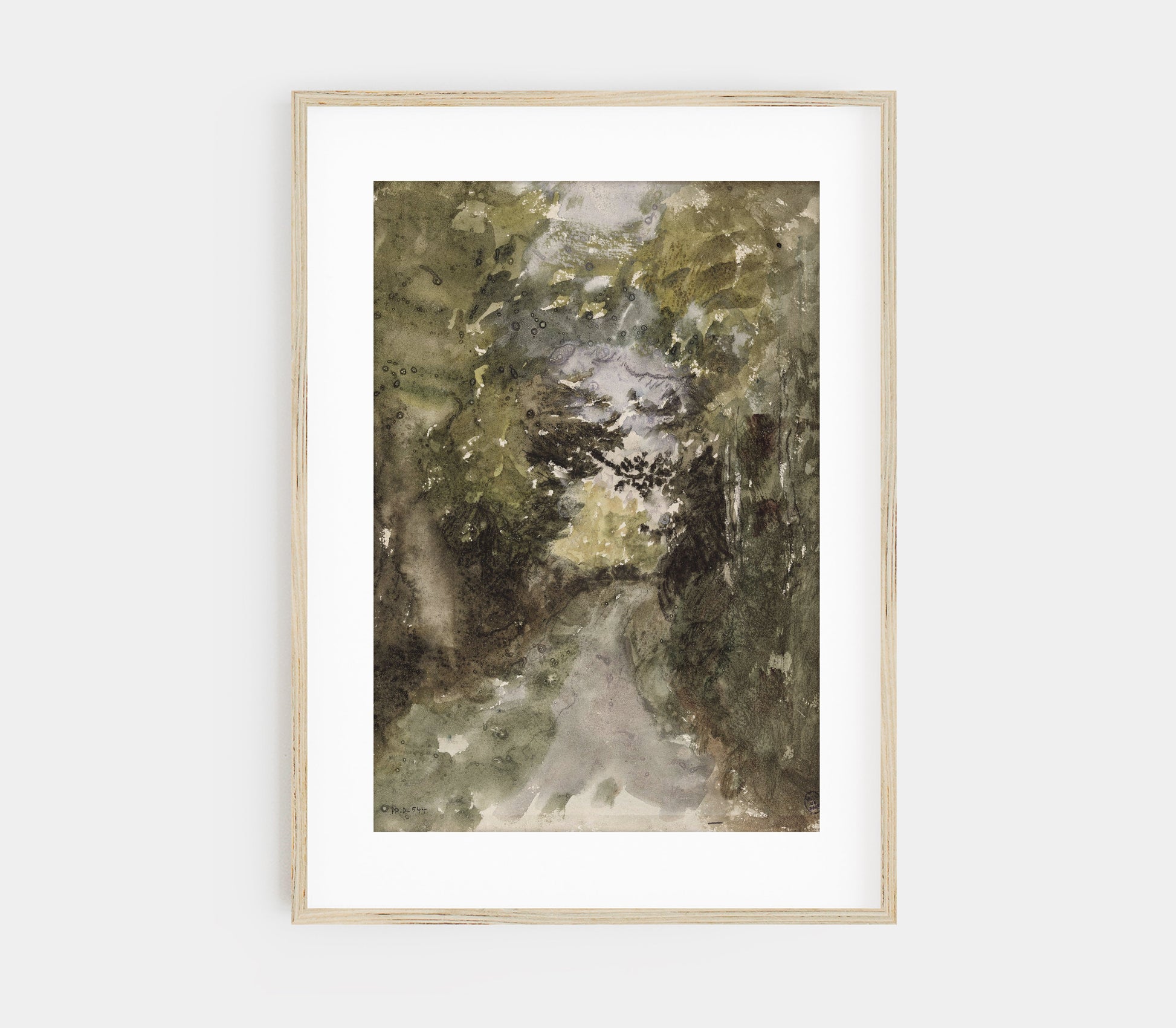 Hyggely Vintage Art Print Collection - Antique Muted Green Landscape Painting
