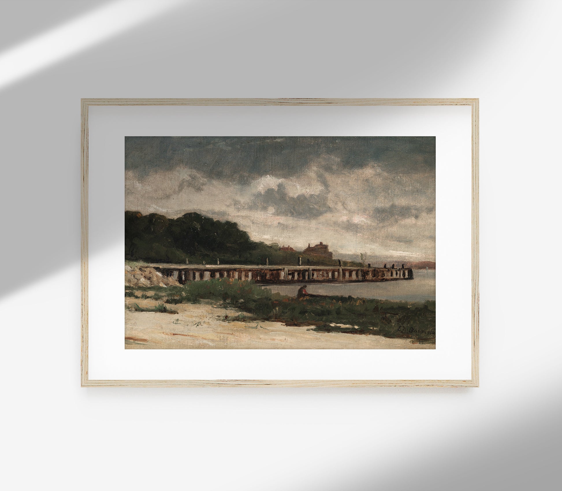 Hyggely Vintage Art Print Collection - Antique Muted Oceanside Landscape Painting