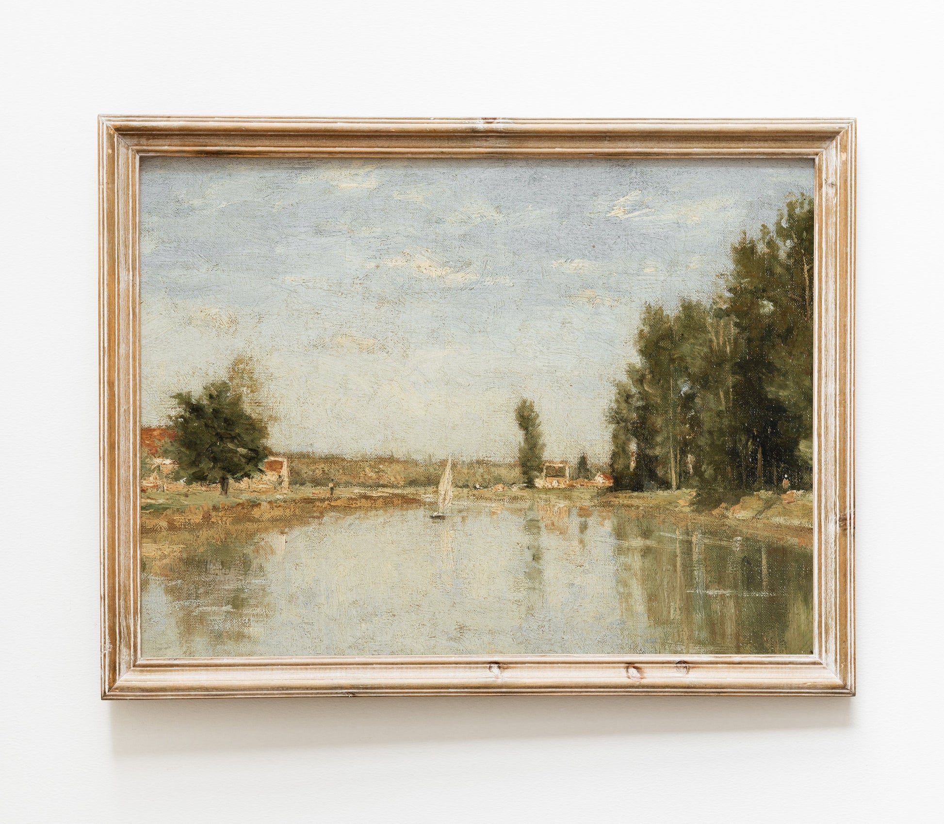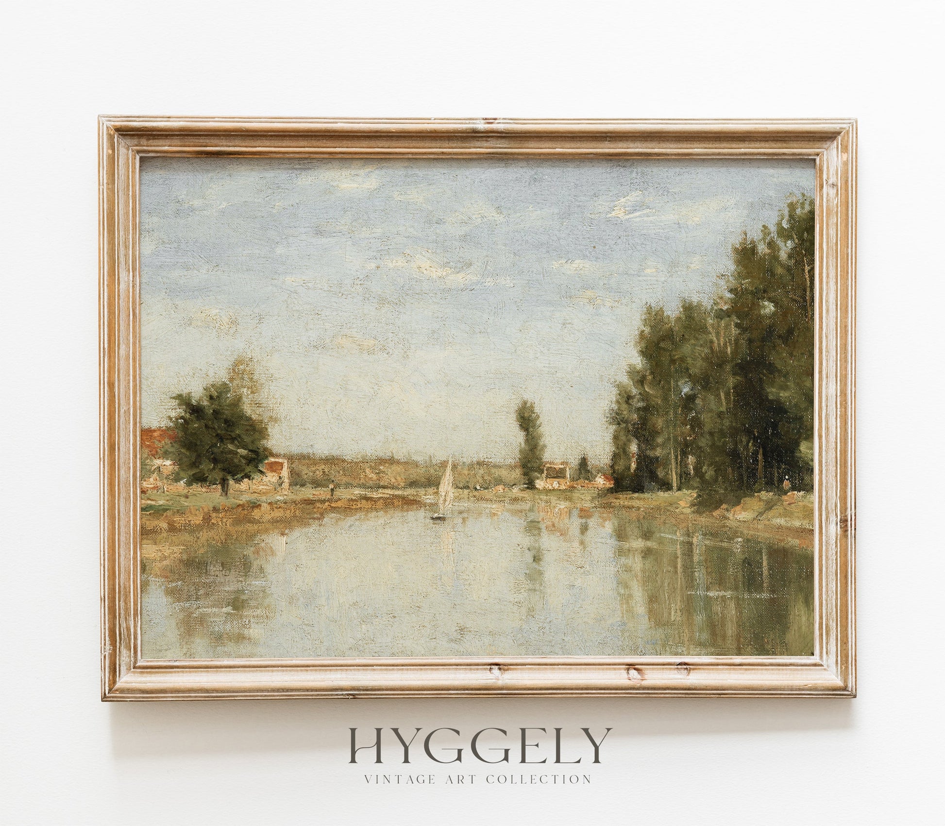 Hyggely Vintage Art Print Collection - Antique Oil Painting of Muted Green Landscape