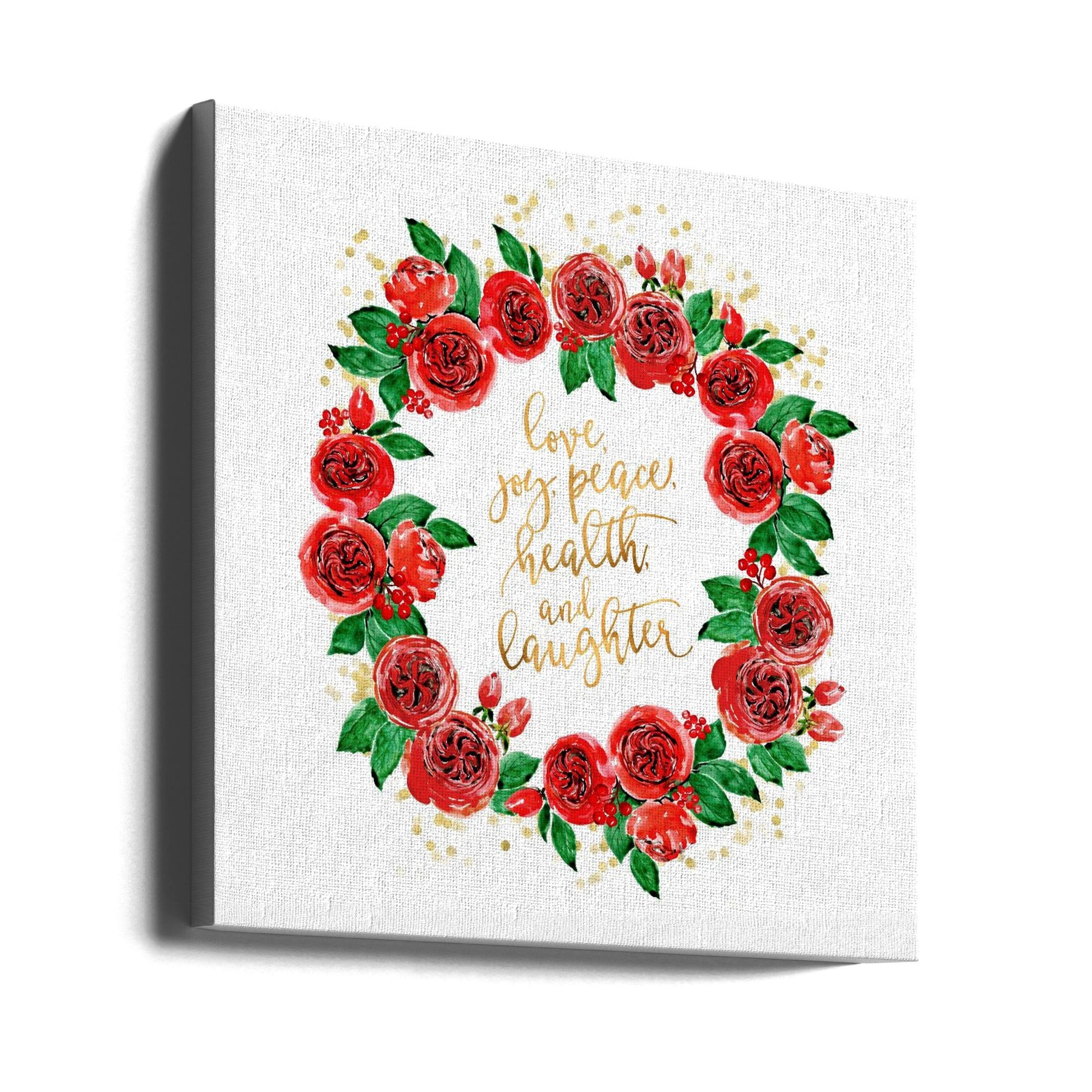 Wall art Holiday wishes wreath of red English roses by Rosana Laiz Blursbyai