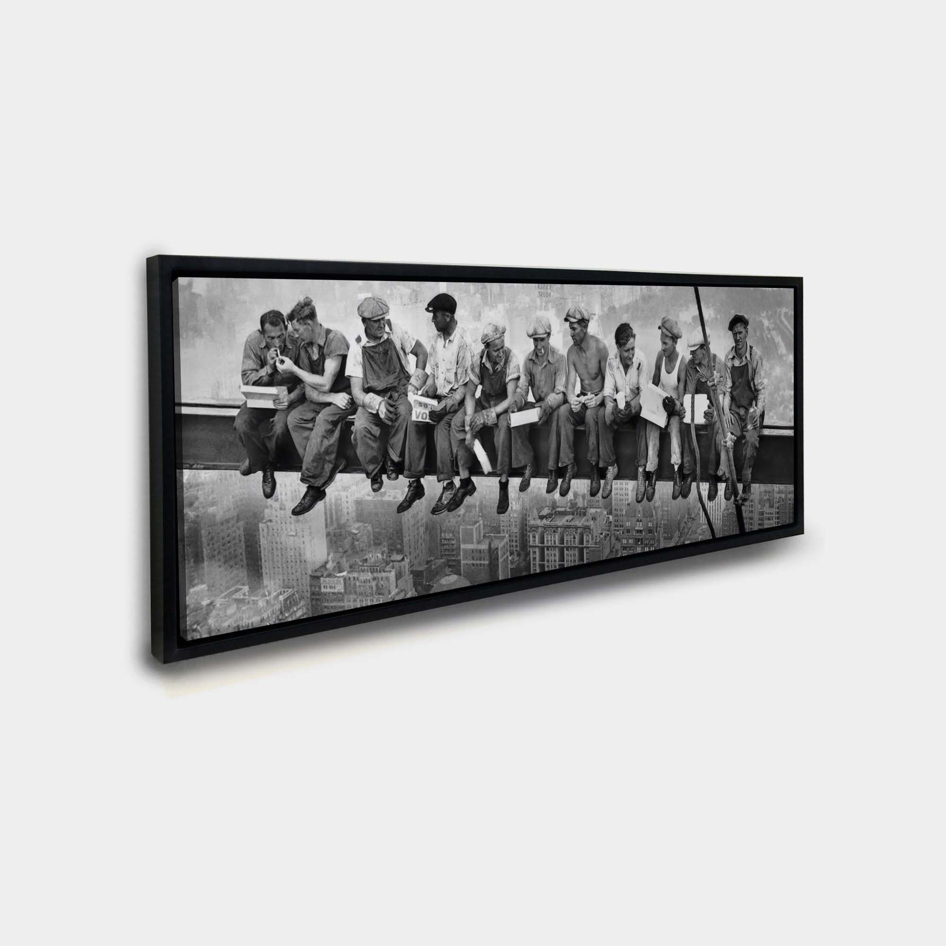 Discover an iconic moment in history with our lunch atop a skyscraper canvas. According to Wikipedia, this black-and-white photograph captures a group of ironworkers sitting on a beam 850 feet above the ground during the construction of the RCA Building in Manhattan, New York City. Acquire a piece of history and promote the beauty of iconic art with our canvas print.