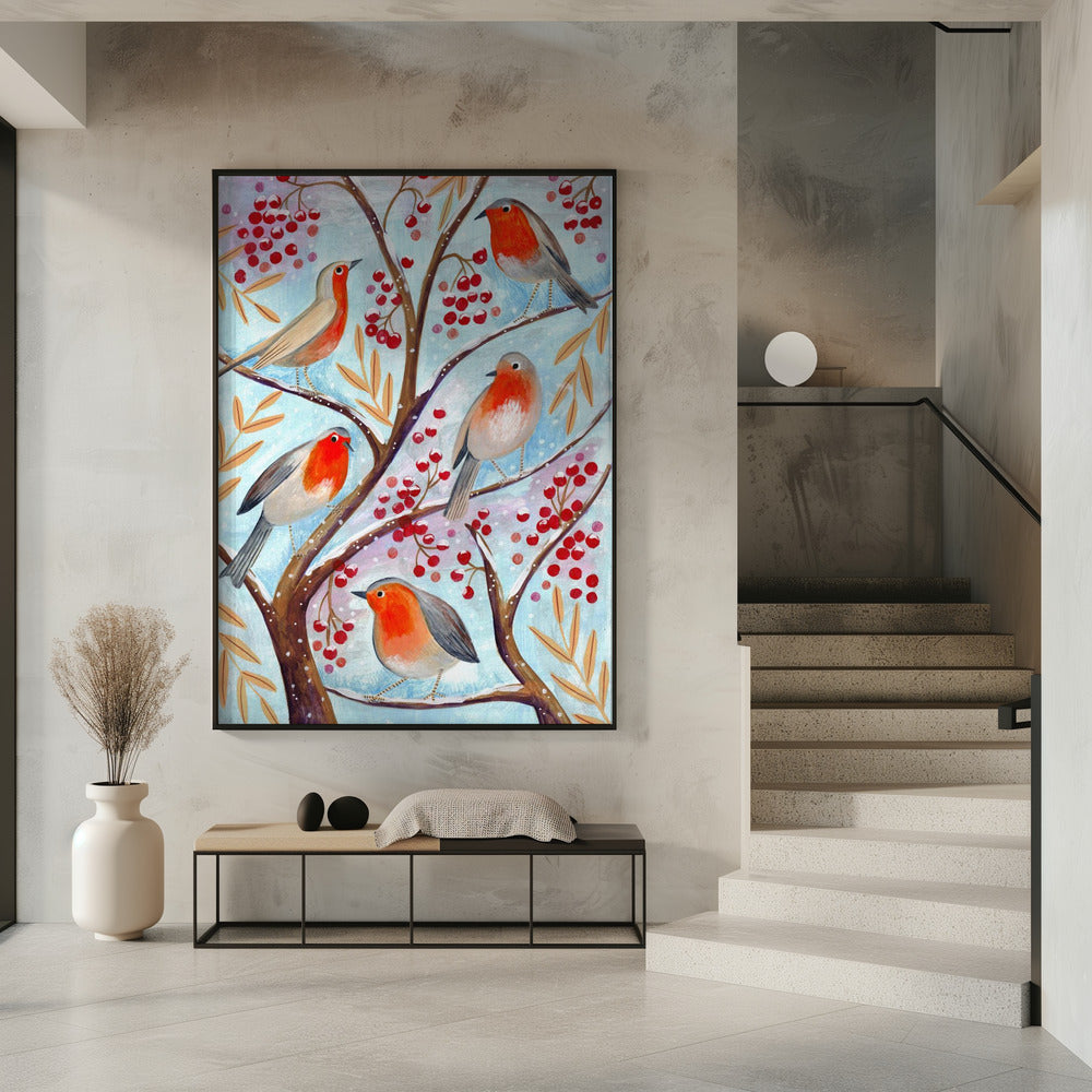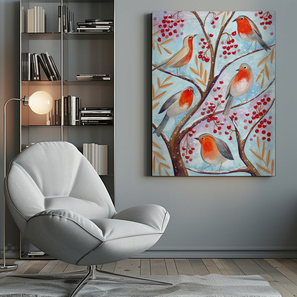 Wall art Winter birds robins Christmas snow by Caroline Bonne Müller