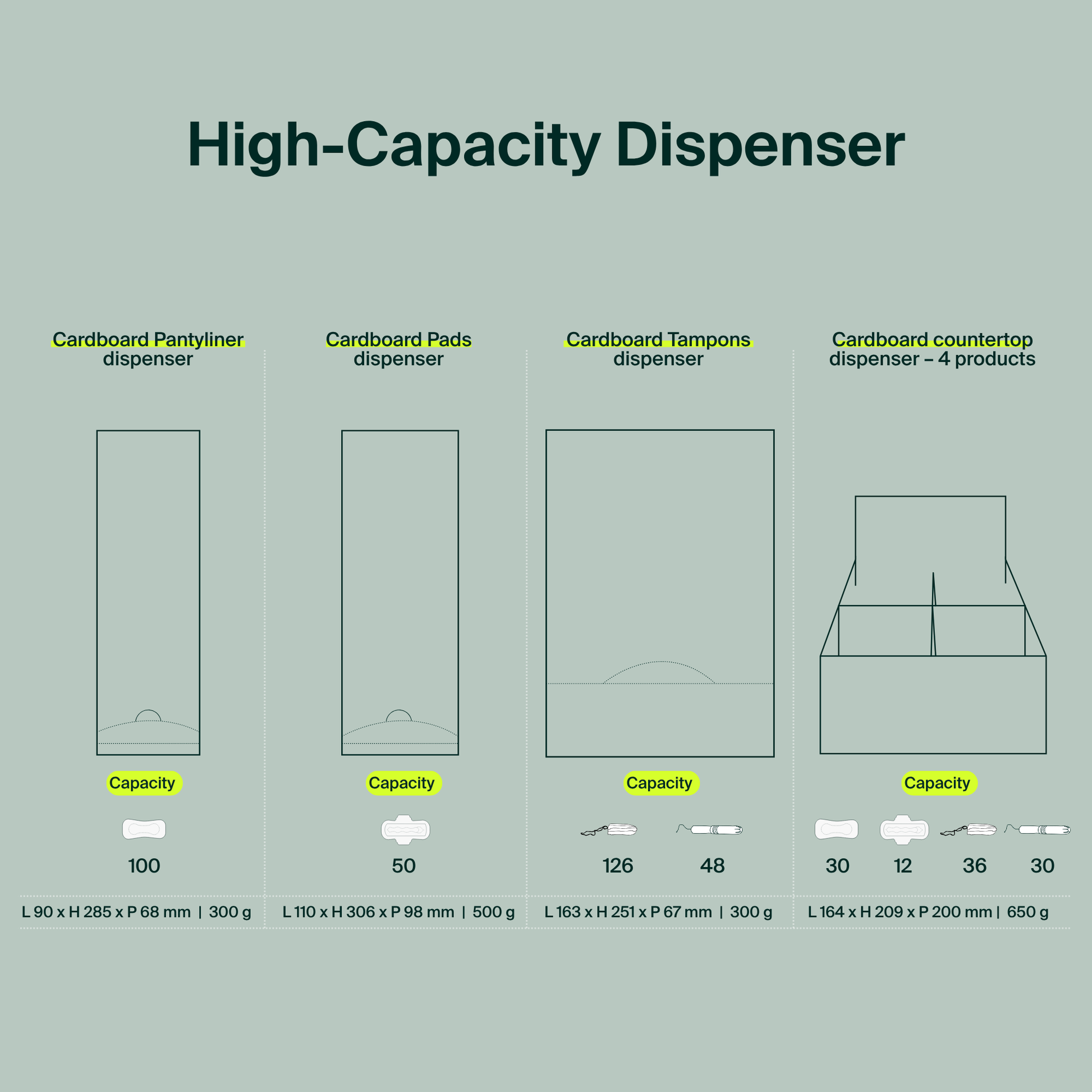 Wall-Mounted Cardboard Dispenser, 100% Organic Cotton Daily Pads