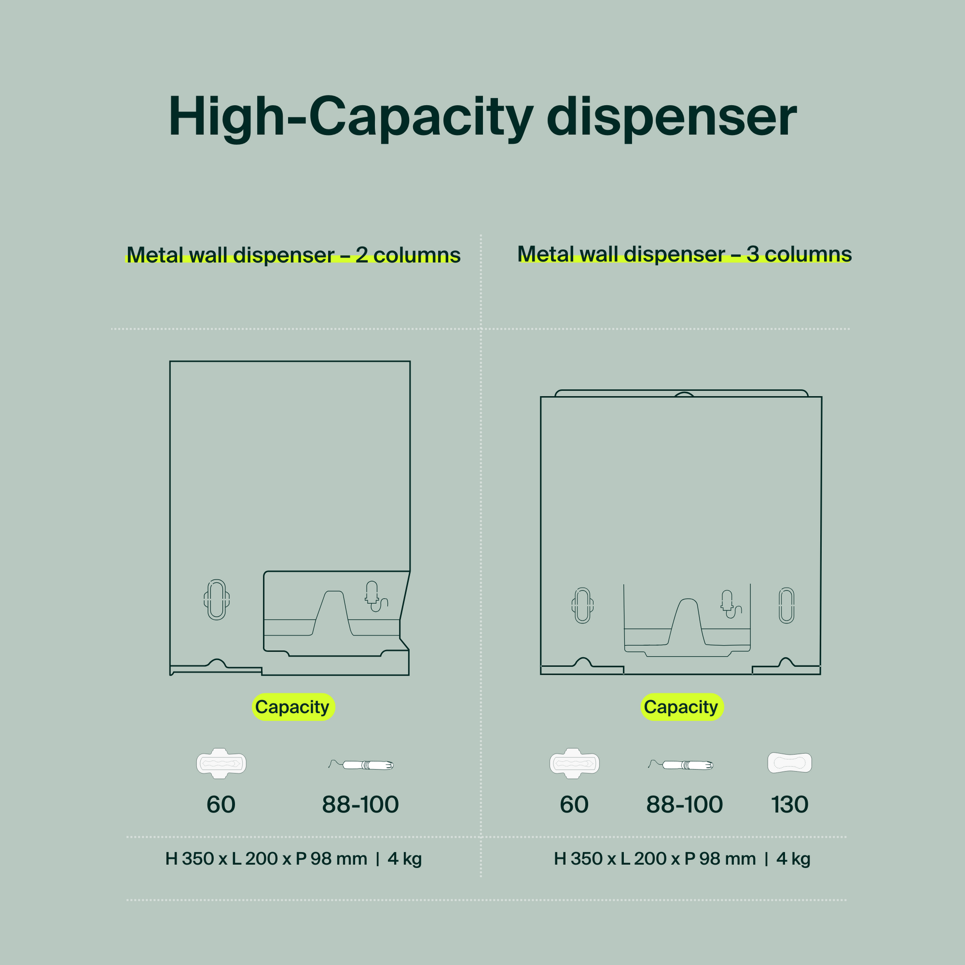Wall-Mounted Steel Dispenser - Regular Pads & Tampons