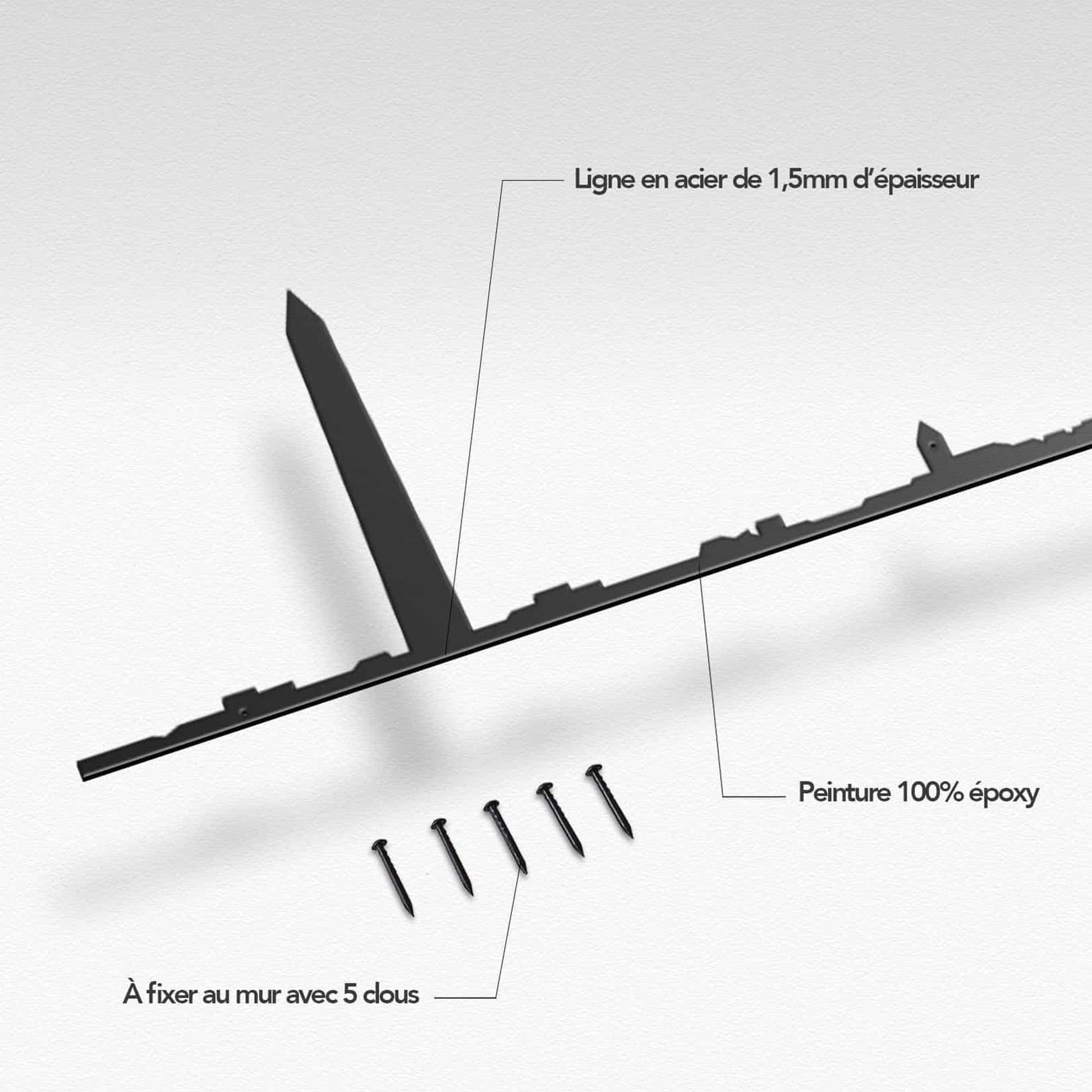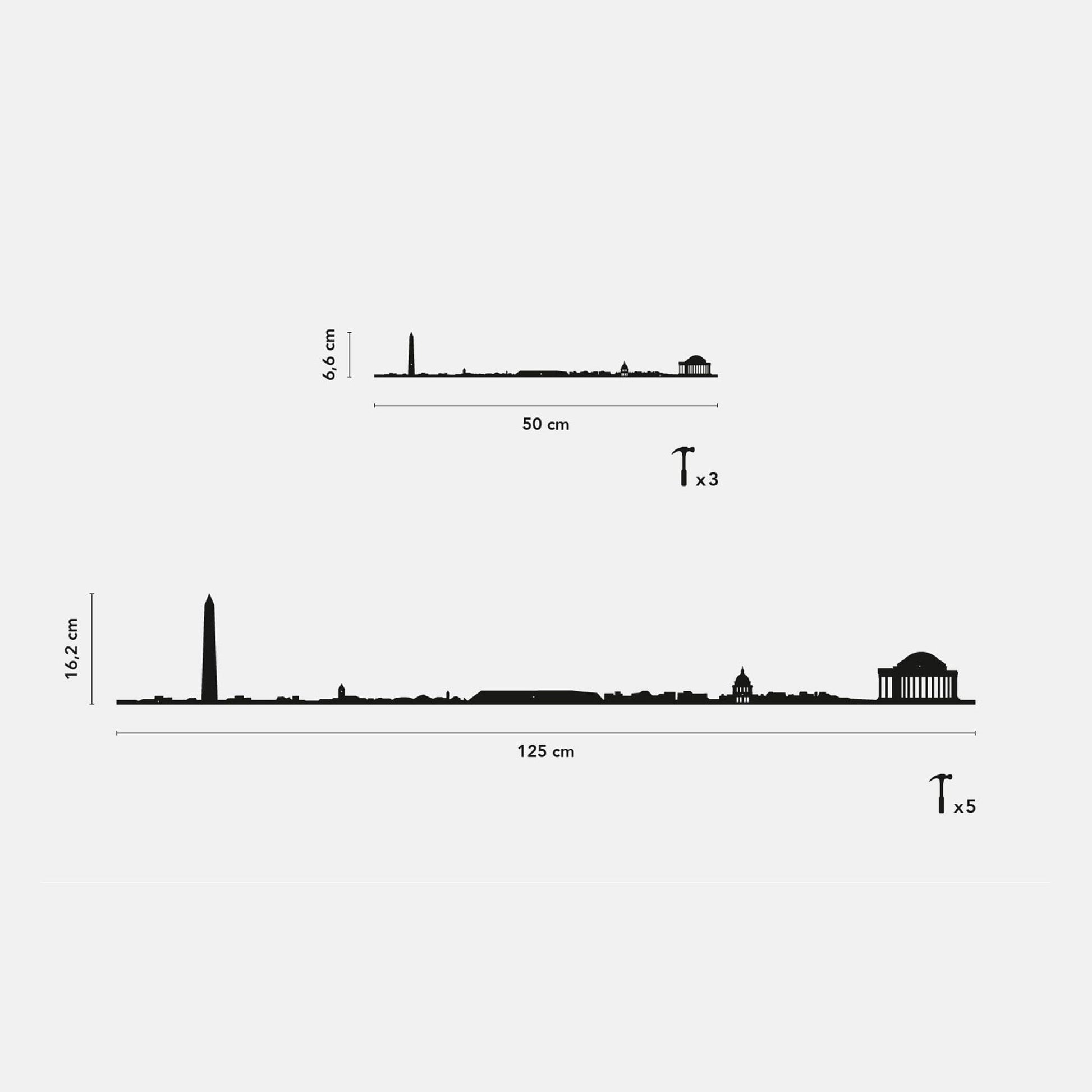 The Washington Line art piece, offered in both 50 cm and 125 cm sizes, beautifully captures the iconic landmarks and architectural spirit of Washington, D.C. This silhouette representation highlights key features of the cityscape, offering a minimalist yet detailed tribute to the U.S. capital's historic and modern elements.