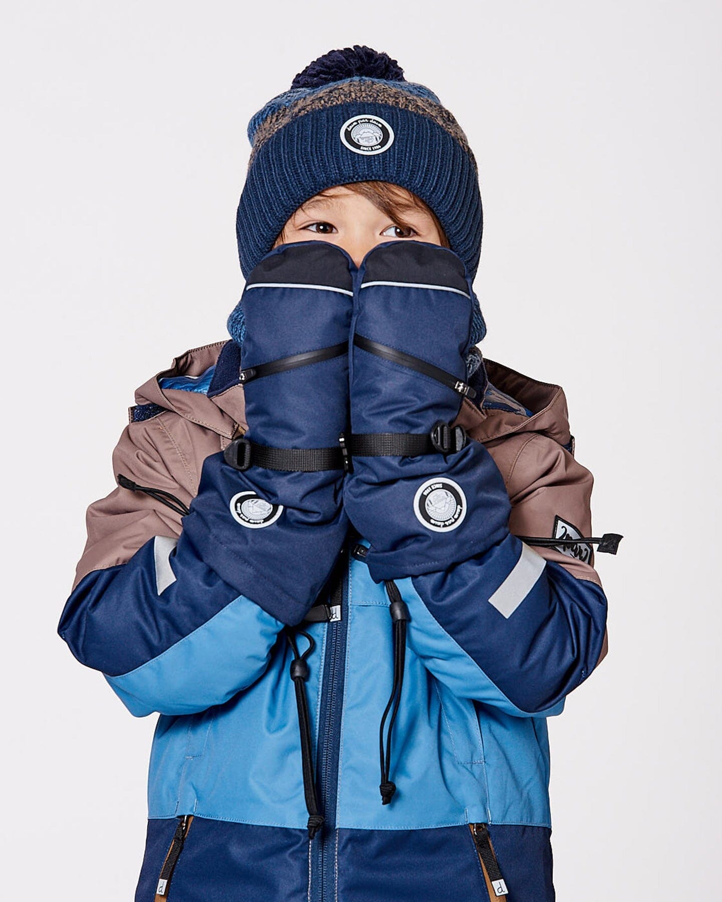Our most technical mittens to date, these TEKNIK mitts are coated with 15,000mm of polyurethane to remain waterproof in the heaviest rains and snowstorms. Breathable, abrasion-resistant, and dirt-repellent, these winter mittens offer essential protection in temperatures as low as -30°C (-22°F). In navy blue, they're detailed with rubber palms for increased gripping, a waterproof zipper pocket to hold hand warmers, a brushed microfiber lining to keep hands dry, and an ergonomic pre-curved fit with Cordura®-reinforced tips.