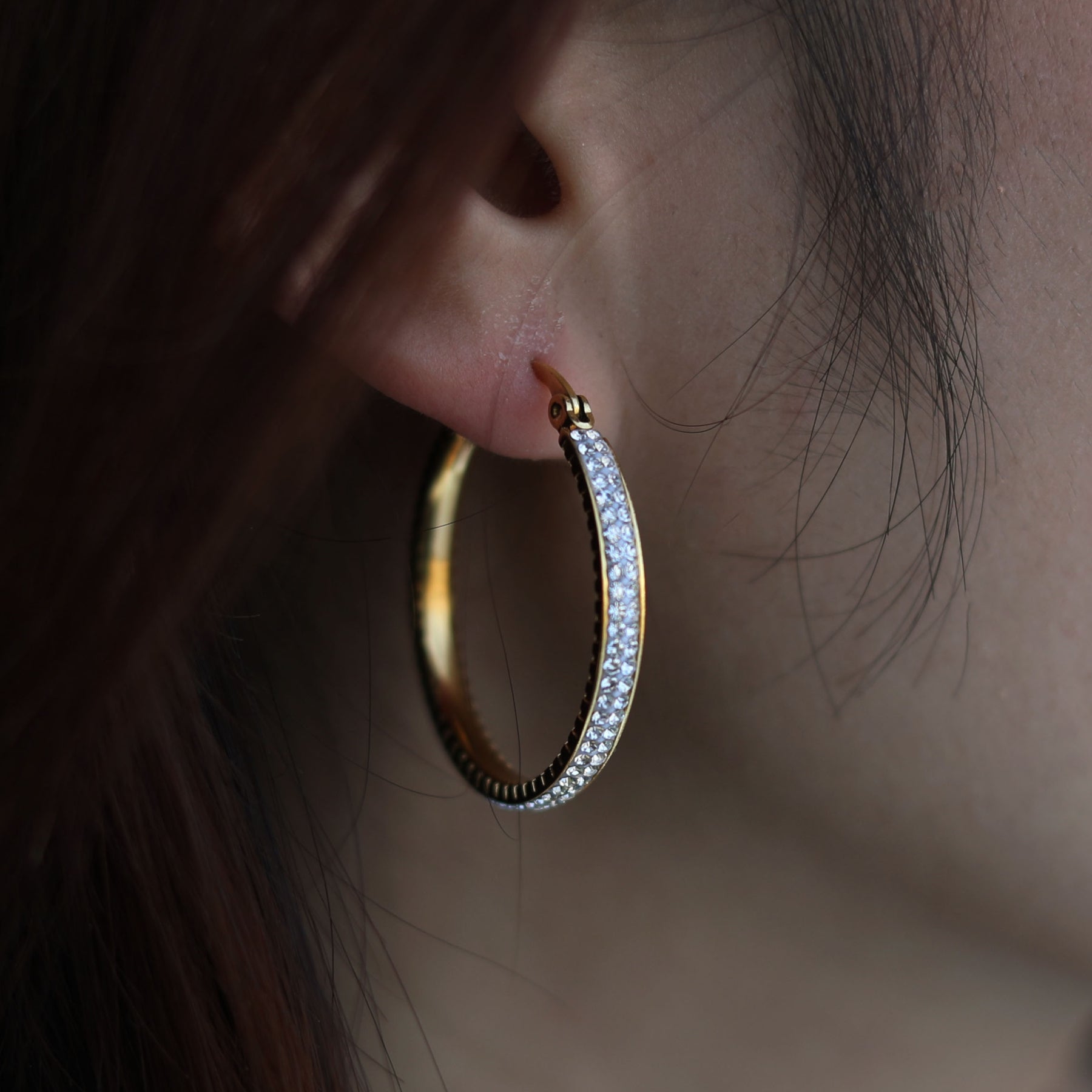 YARA Gold: 'Pavé All the Way' Zirconia Hoop Earrings (Regular Size)