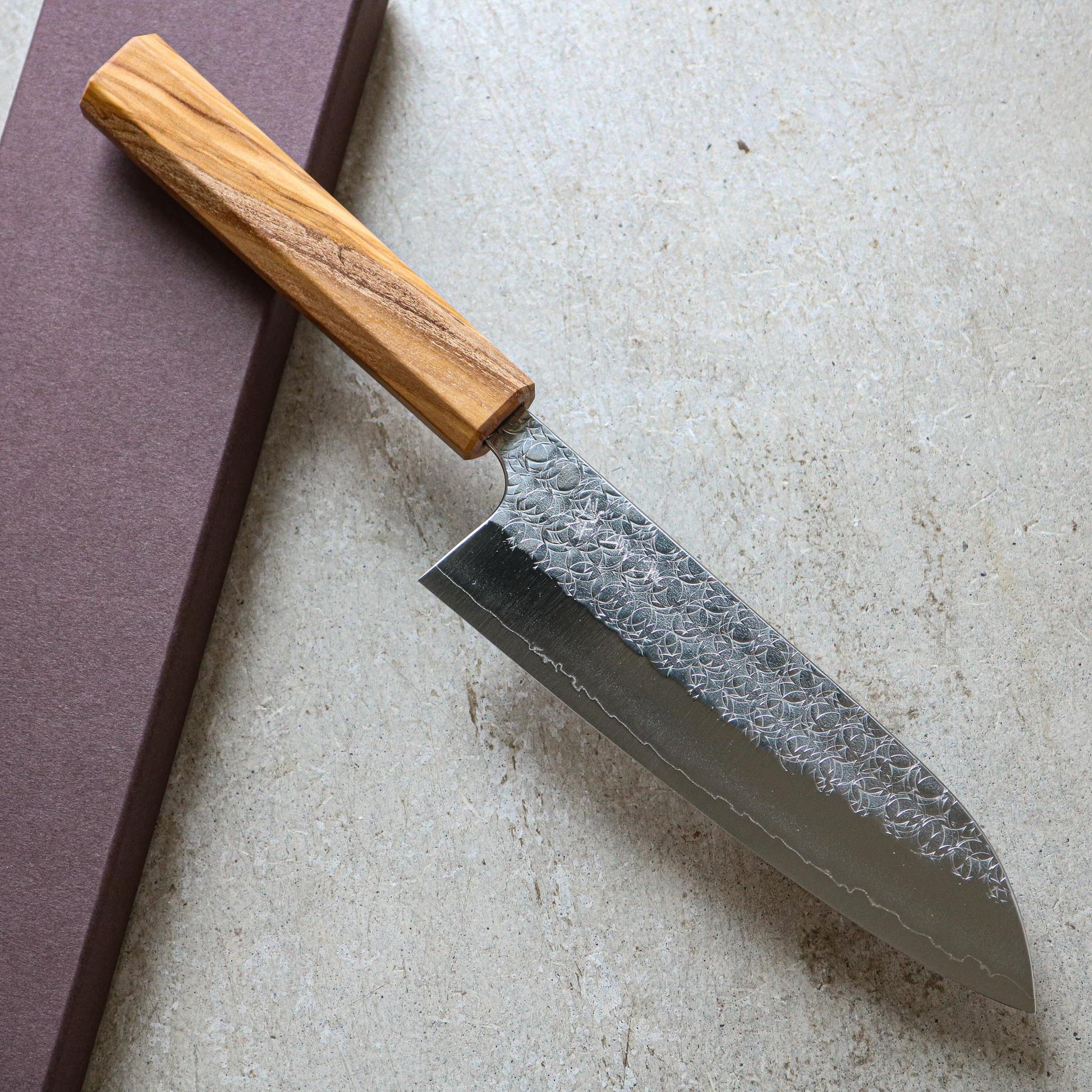 Yoshimi Kato works out of the Takefu Knife village and took over the Family business from his father in-law in 2013. His Father in-law Hiroshi Kato-san started the shop in the late 1960's and was inaugurated as the 4th Chairman of the Takefu Knife village in 1994. Making incredible knives runs in the family obviously and we're very excited to have these incredibly sharp knives in our shop. They have one of the most beautiful tsuchime patterns we have ever seen and are sharpened by famous knife sharpener Makoto Kurosaki; brother of one of our favorite knifemakers Yu Kurosaki.