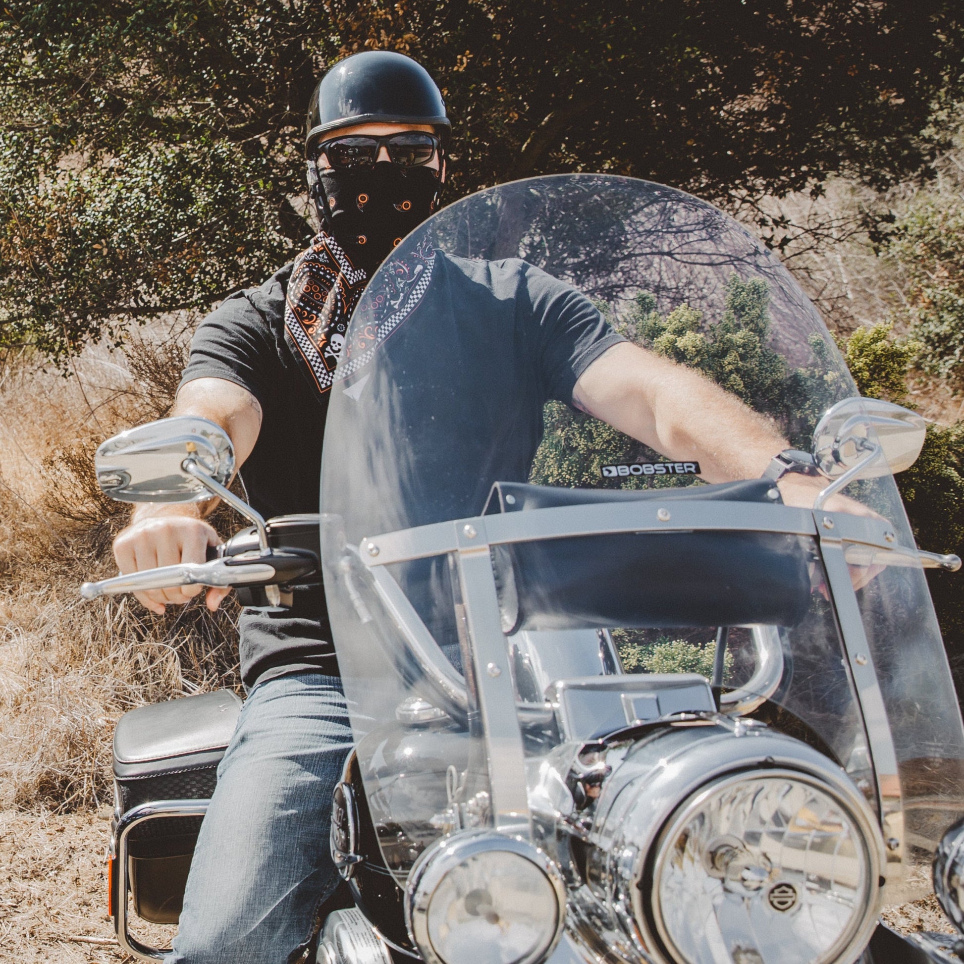 This bandana is perfect to keep you warm, protected and fashionable with its classic red and white paisley design. Can be warn 3 different ways and is safely and comfortably secured with Velcro.