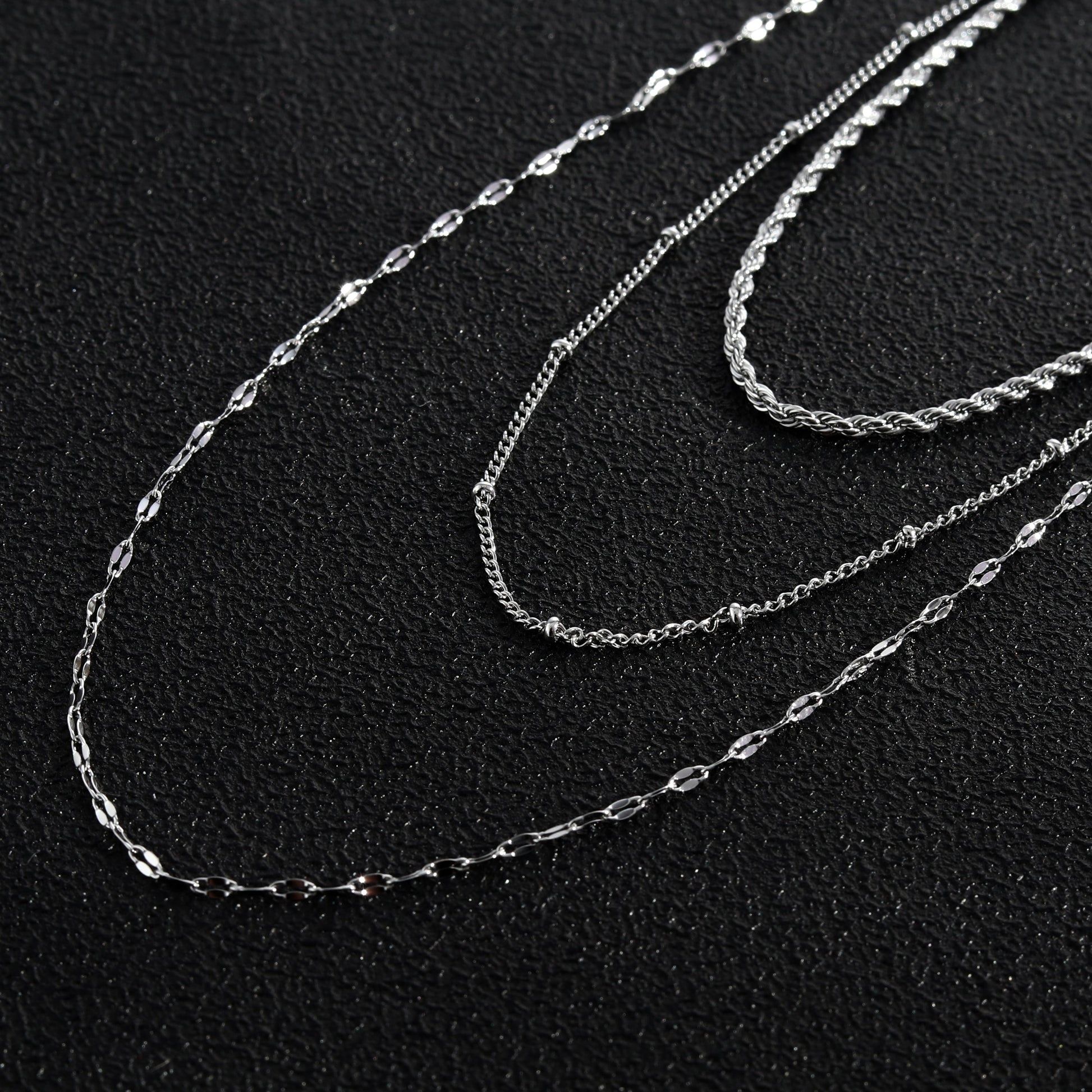 ZURI Triple Layer Mixed-Chain Necklace in Silver
