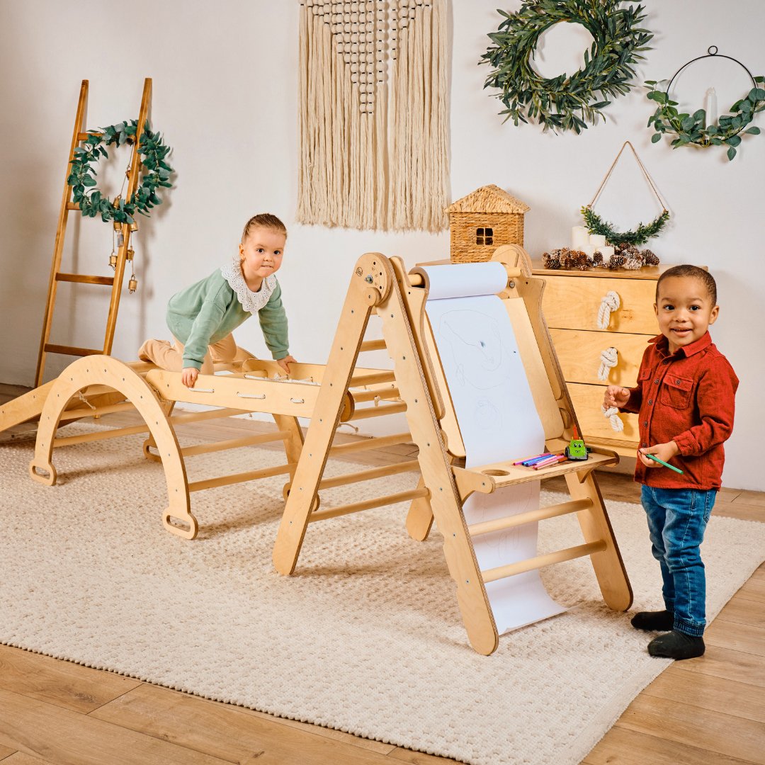 5in1 Montessori Climbing Set: Triangle Ladder + Climbing Arch + Slide Board + Climbing Net + Art Addition