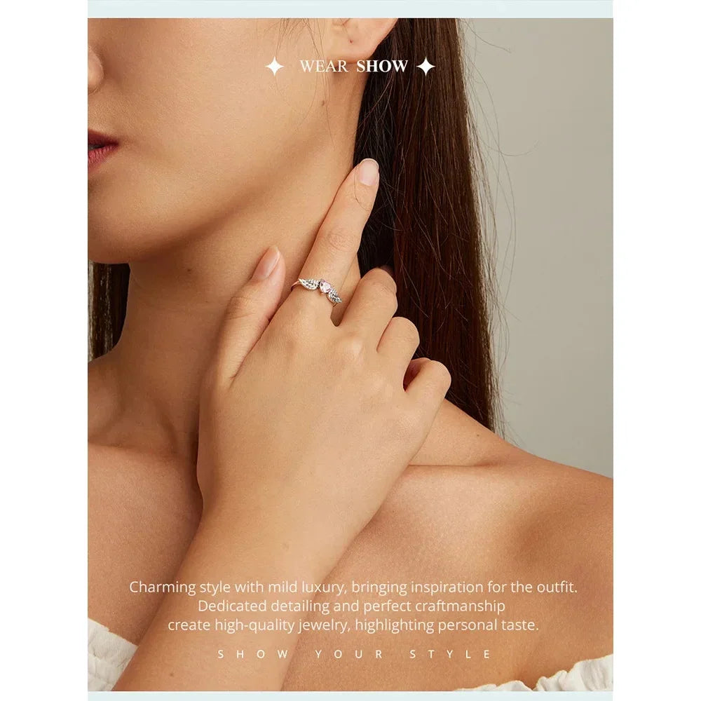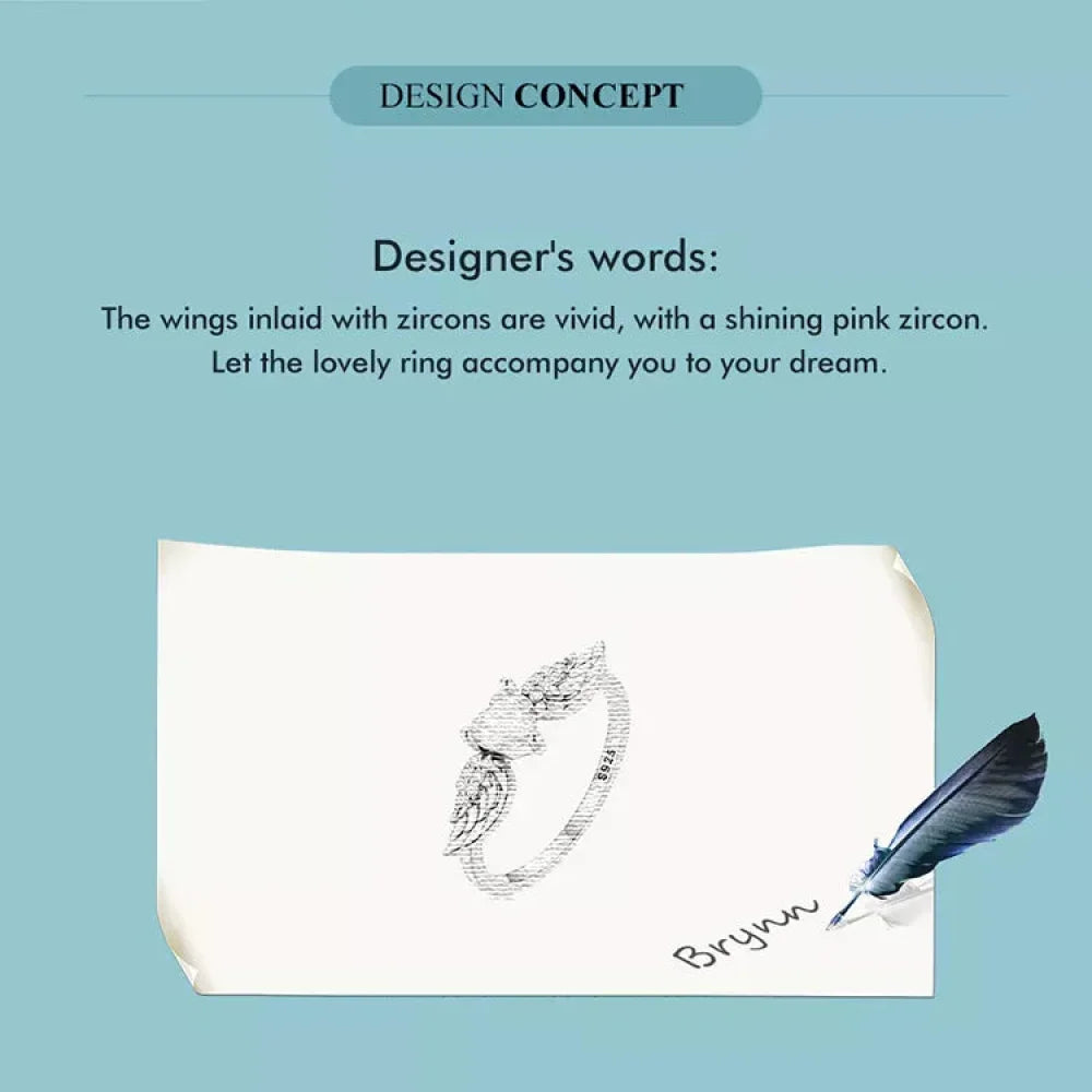 925 Sterling Silver Pink Heart Wing CZ Ring