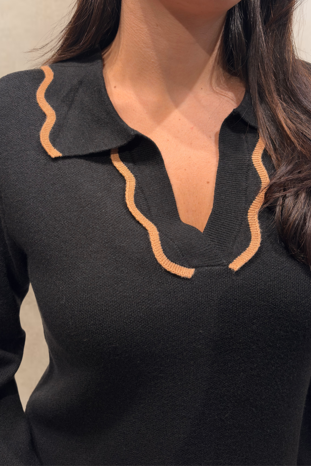 Alice Black Knit Dress Polo Shirt Collar Piping Neckline Relaxed Fit
