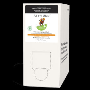 ATTITUDE Nature + Technology™ Dishwashing Liquid – Citrus Zest BULK to go format includes nearly three times the amount of product, which means less time running errands, and less packaging waste!