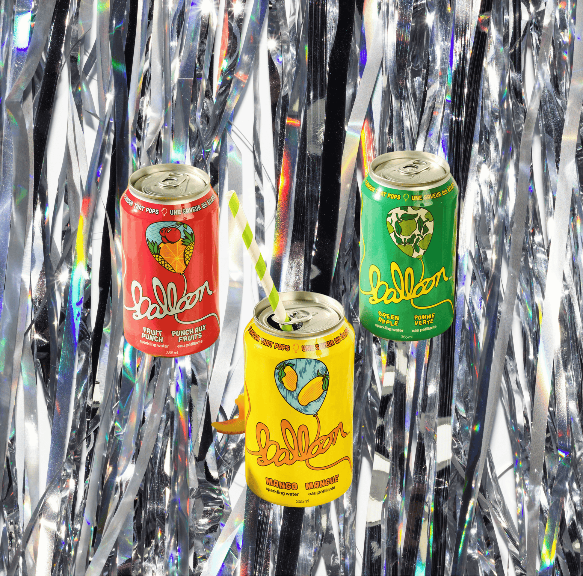 Each can of Balloon sparkling water has 5g sugar (or less), 25 calories (or less). They play nicely as a solo drink OR as a delicious mixer!