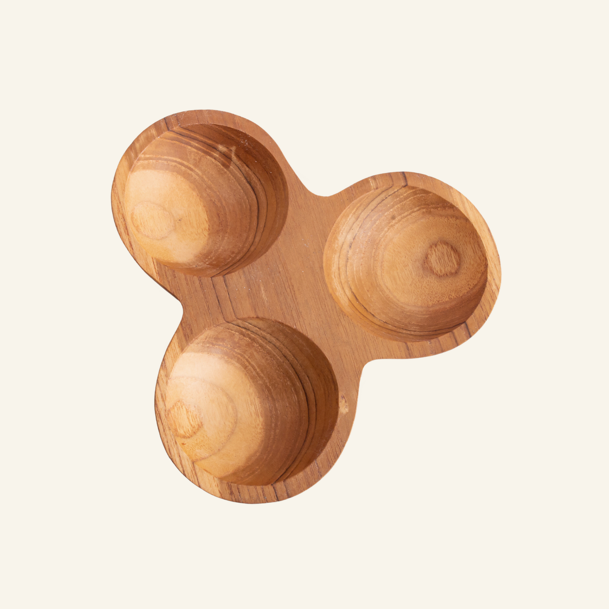 Avec ses 3 compartiments, ce joli bol en teck vous permettra de présenter touts vos petits encas préférés. ** Remarque : produit qui peut légèrement en apparence et en dimension par rapport a l'image.