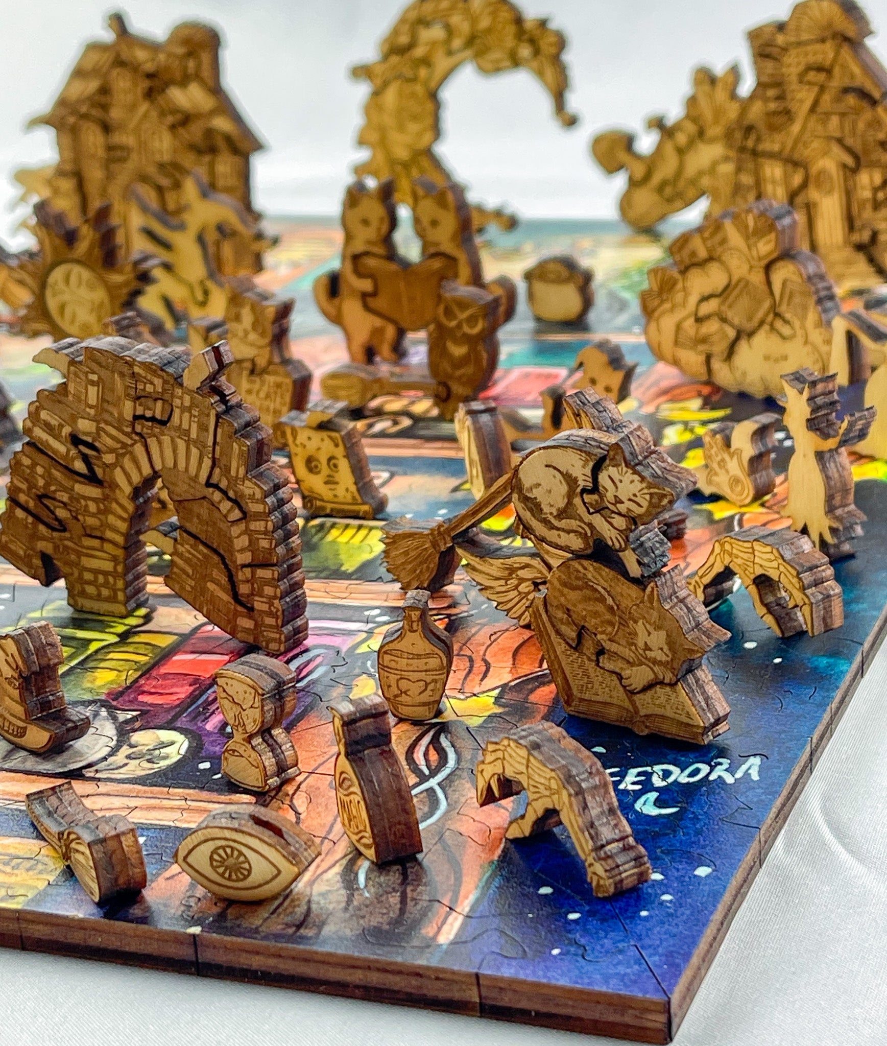 Whether you're a bookworm, a puzzle enthusiast, or someone who loves a touch of magic, Books N' Things offers a one-of-a-kind journey. With 390 beautifully cut wooden pieces, it’s the perfect gift for anyone who believes in the power of stories and dreams.Artist: Kathryn (Kat) Fedora