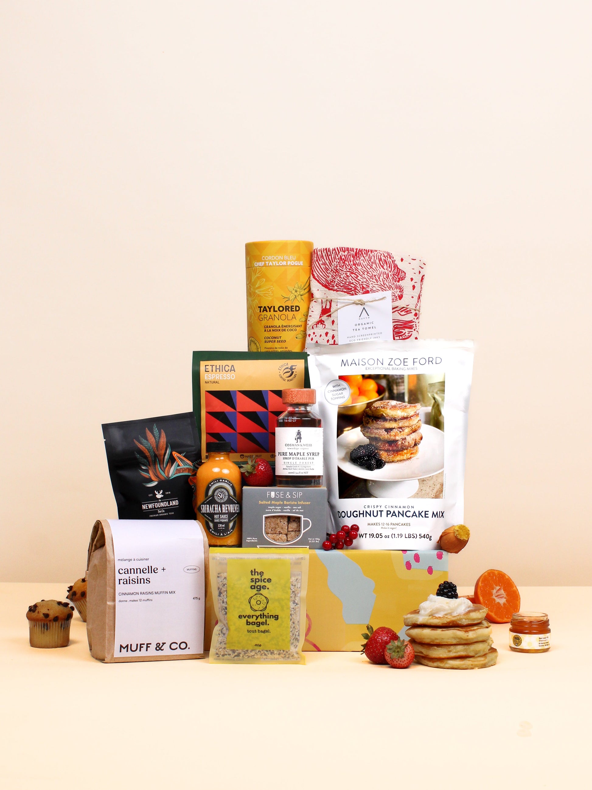 Mornings feel brighter with this Canadian-made brunch-inspired box. Inside are pancake mix, maple syrup, small-batch coffee, festive jams, and a holiday tea towel — perfect for relaxed weekends or holiday gatherings. A cheerful gift that starts the day with warmth and flavour.