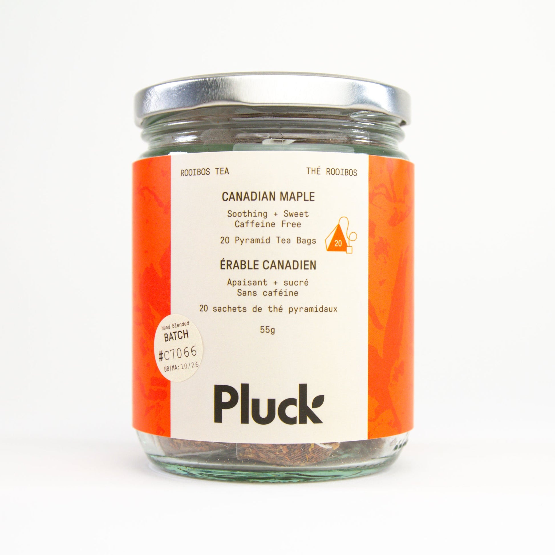 A touch of real Canadian maple syrup (and a sprinkling of naturally sweet licorice root) makes this naturally caffeine - free rooibos tea an ideal infusion for any time of day. Blended with freshly roasted cacao shells from Toronto's Chocosol, this truly Canadian tea is delicious hot or iced.