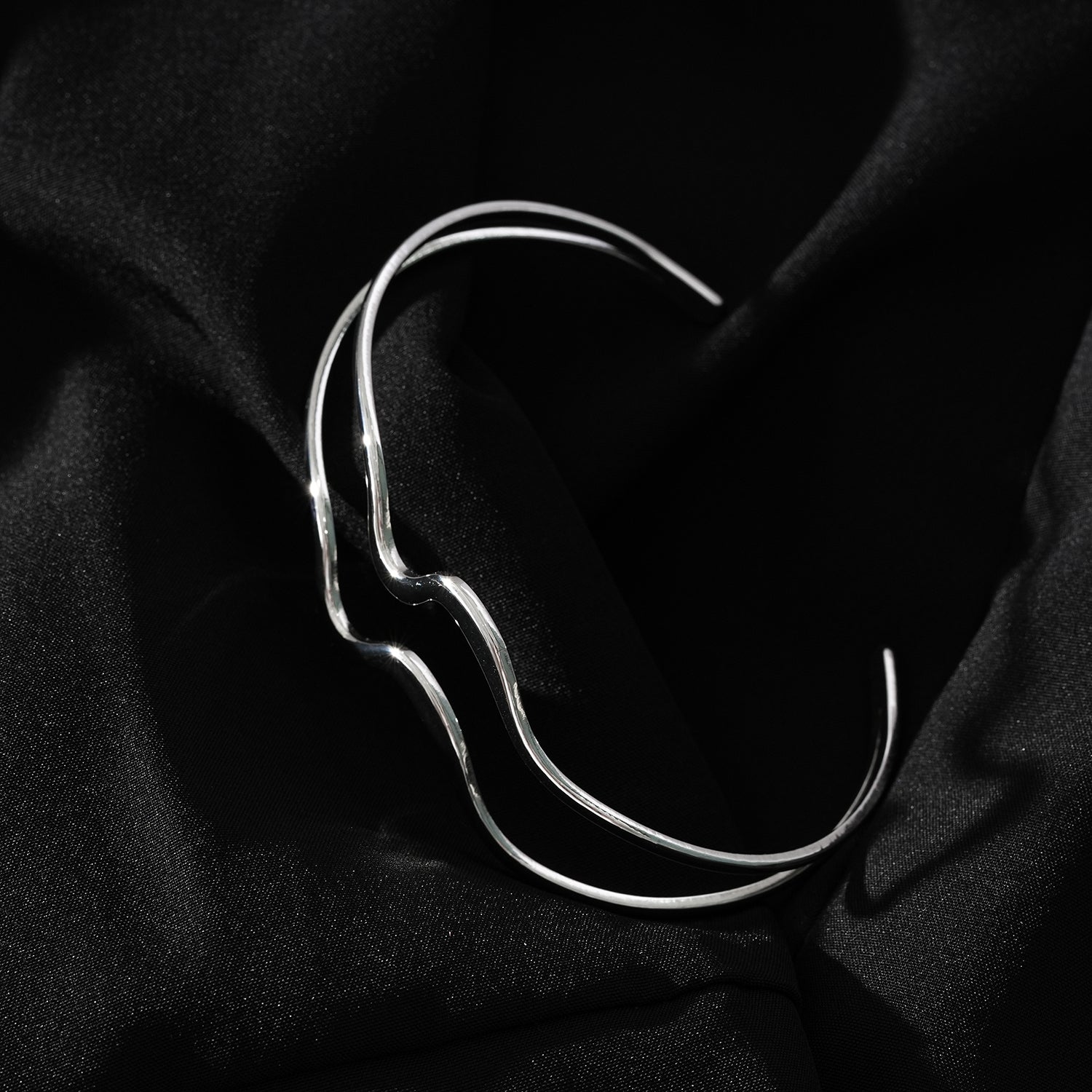 Add a touch of industrial edge and modern elegance to your jewelry collection with our abstract shaped bands bracelet. Perfect for any occasion, this bracelet is a testament to innovative design and superior craftsmanship. Whether you're dressing up for a special event or adding a statement piece to your everyday look, this bracelet is the ideal accessory to showcase your unique style.