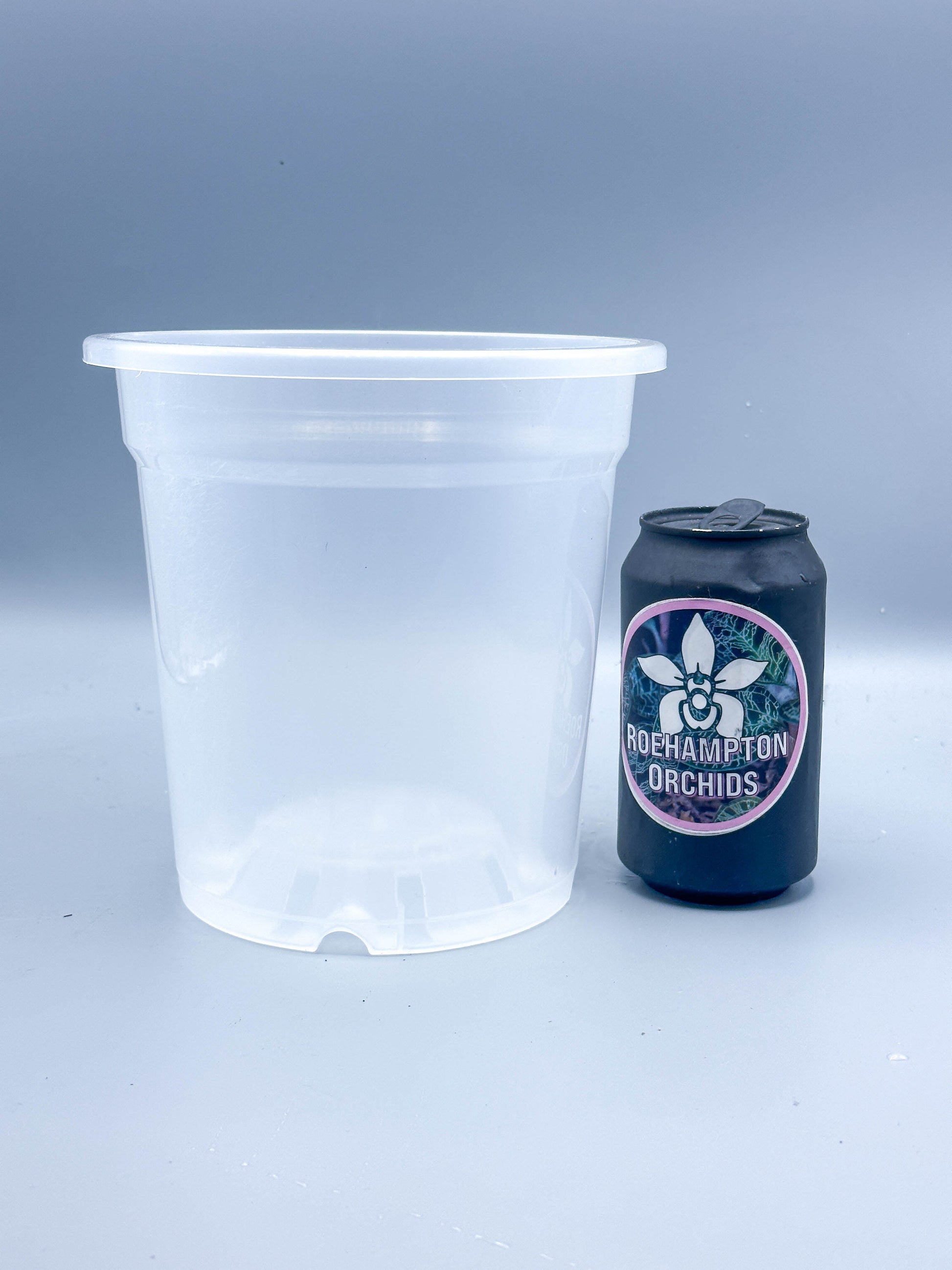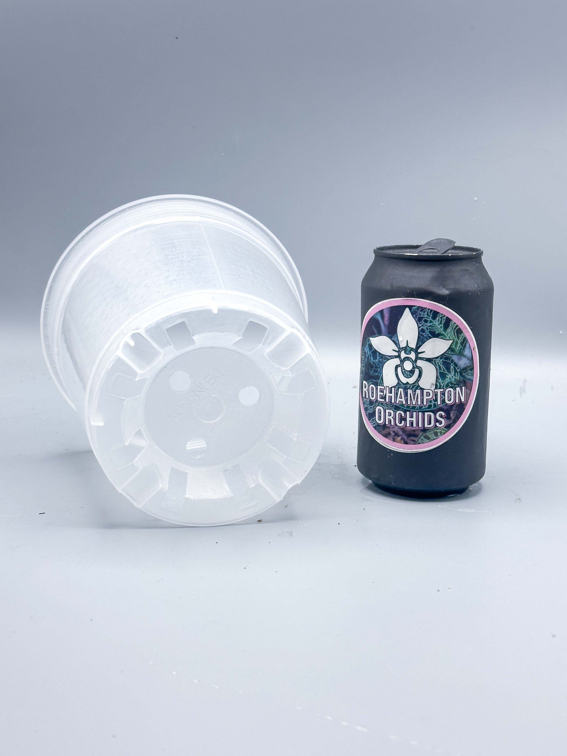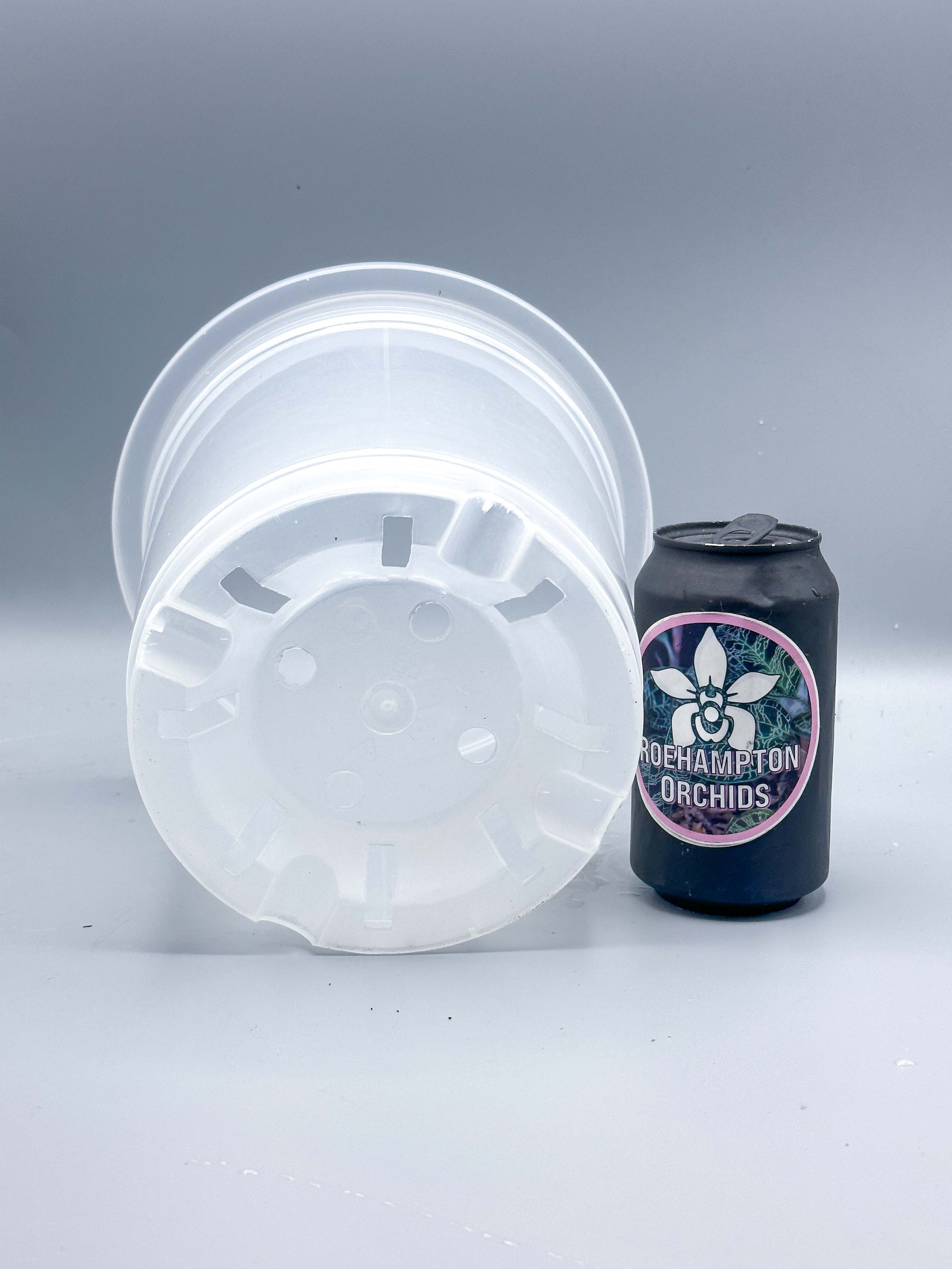 High quality semi-transparent hard plastic pots with high drainage holes of varying sizes. The drainage allow better air flow to the root zone, reducing the chances of rot. This is great for epiphytic orchids that needs their roots exposed to some light. It also allows you to monitor their root growth.
