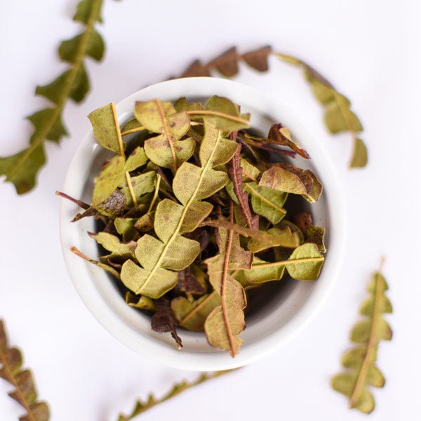 Les feuilles séchées de la comptonie voyageuse (ou Comptonia peregrina) sont souvent utilisées en infusion pour leurs propriétés apaisantes et purifiantes. Voici quelques idées sur comment les utiliser :