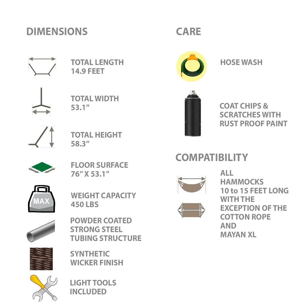 The wicker hammock stand adds to the curb appeal. It promises strength and support for your hours of repose.