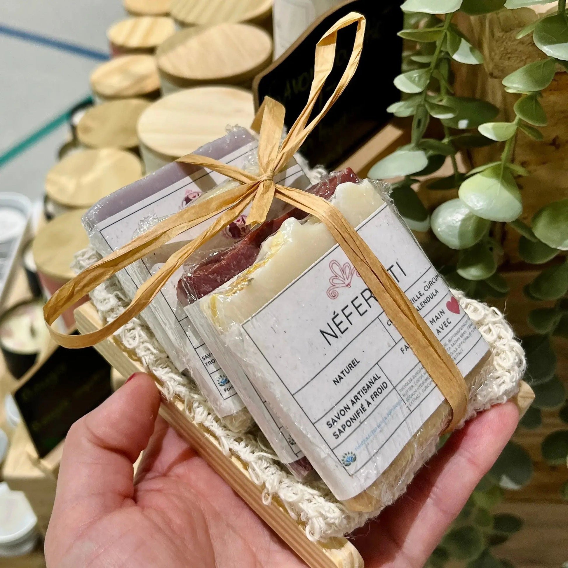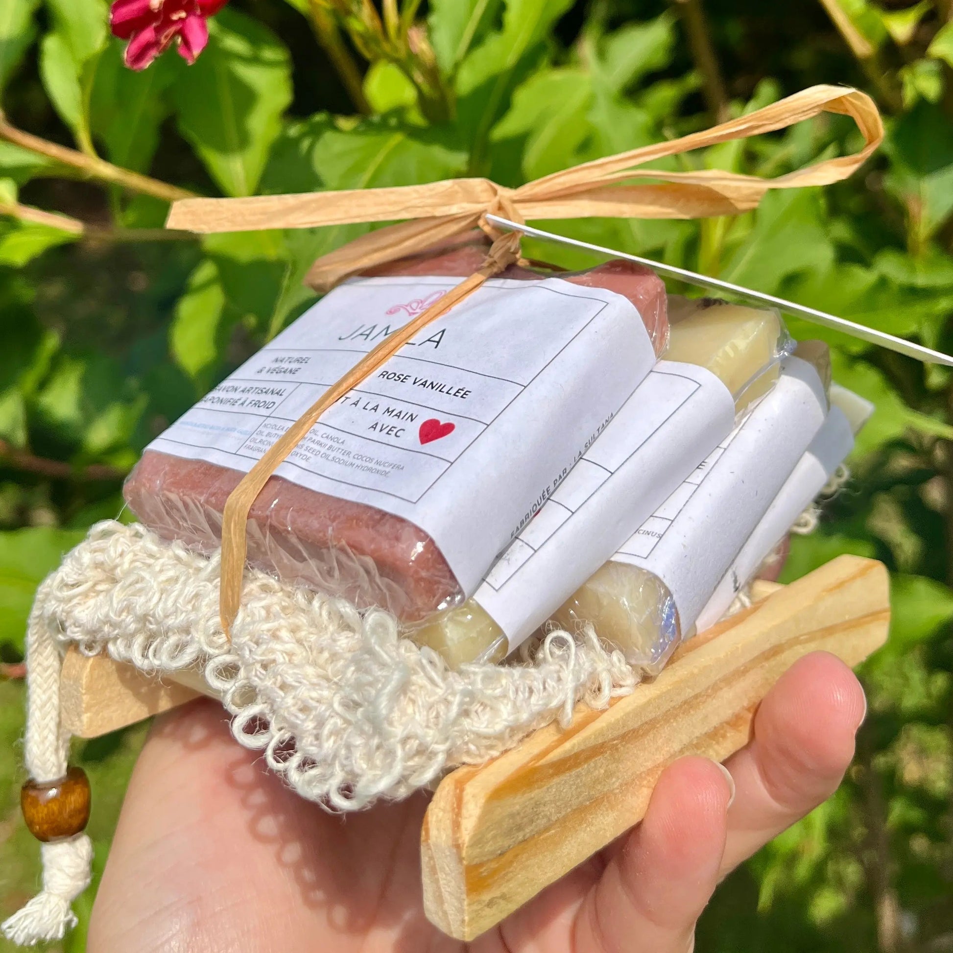 - 4 mini savons (50g) mélangés selon les disponibilités