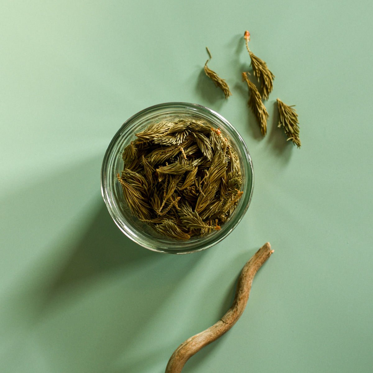 L'épinette blanche, aussi nommée épinette du Canada ou épinette glauque, est un conifère retrouvé en grande quantité dans nos forêts canadiennes. Ses jeunes pousses regorgent de saveurs et d'arômes uniques, caractéristiques de la forêt boréale.