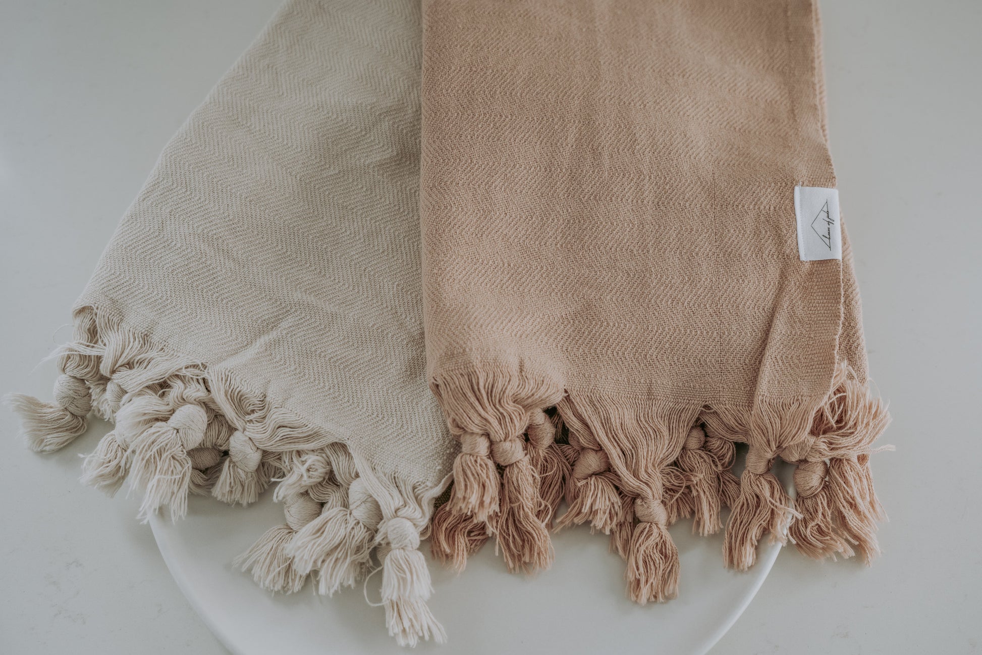 Voici les essuie-mains que vous attendiez tant, doux, absorbants et tendance. Ils sont teints à la main pour créer une apparence unique et dotés d'une frange nouée qui ajoute de la texture.