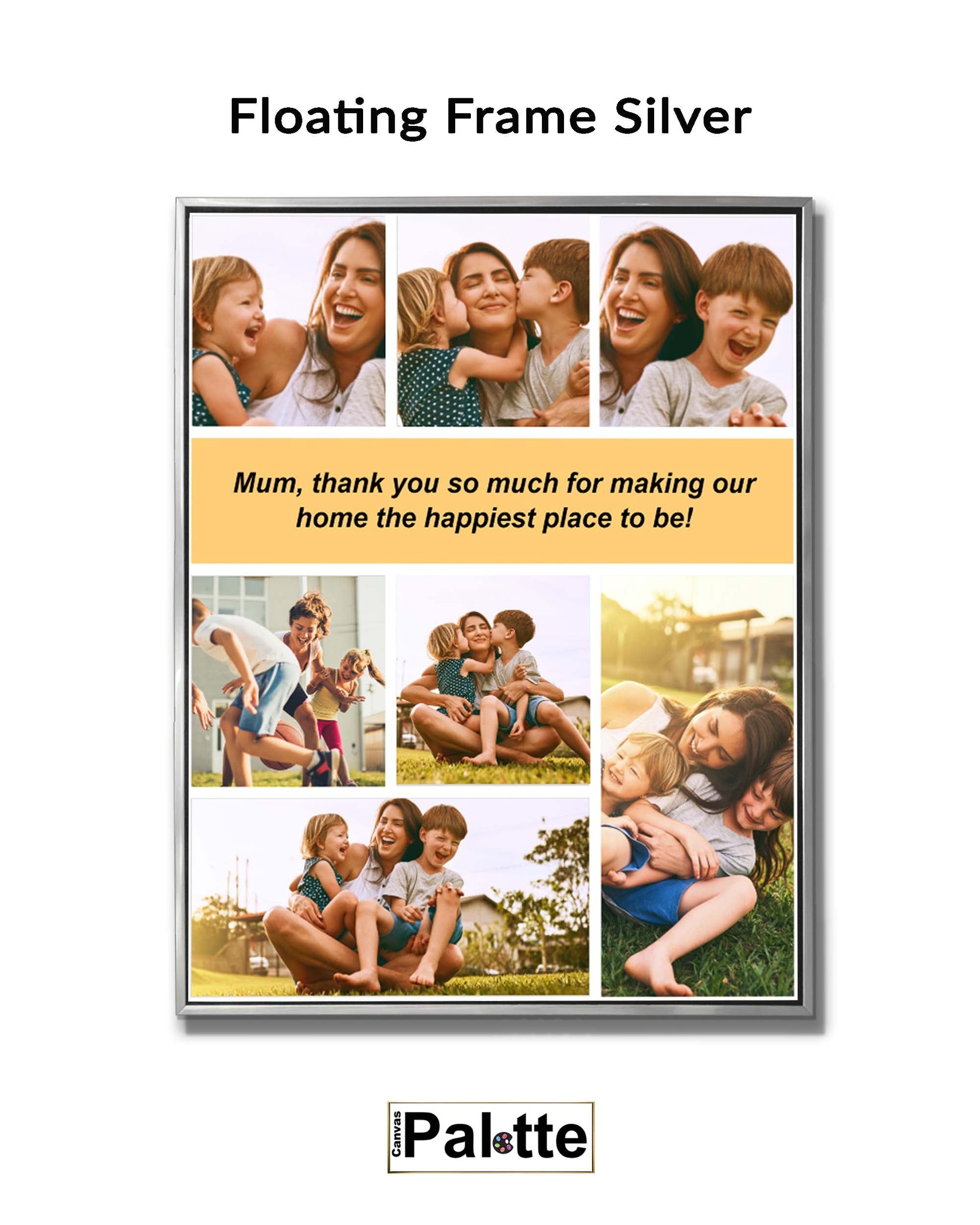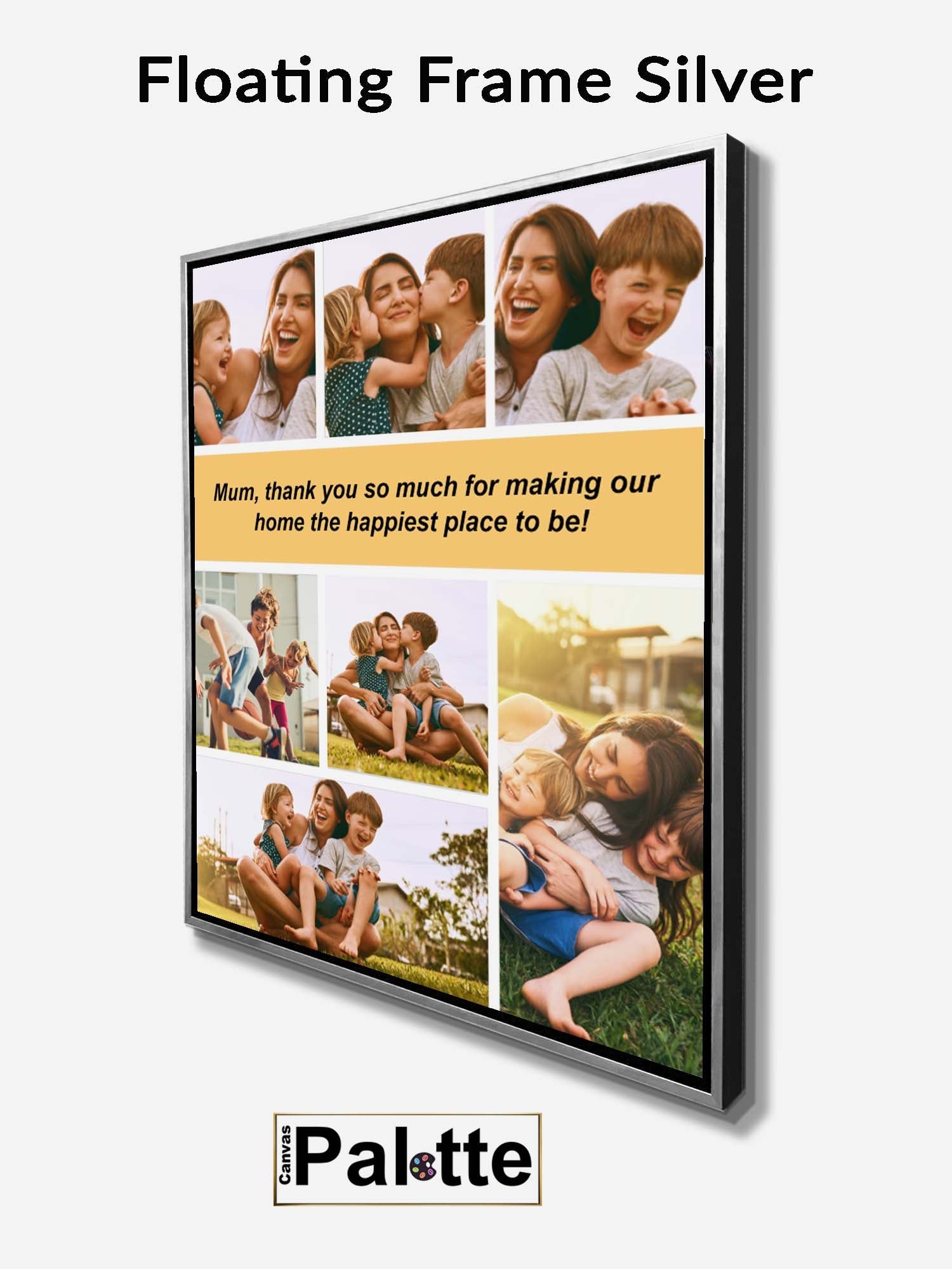 Our floating frames are made of a composite of recycled materials. They are guaranteed not to warp or bend. Add a frame and complete the look. They are made to fit our stretcher bars and are priced as an add on to the canvas. If you order a frame separately it likely will not fit your canvas and will ship unassembled. 10% Restocking charge for cancelled frame